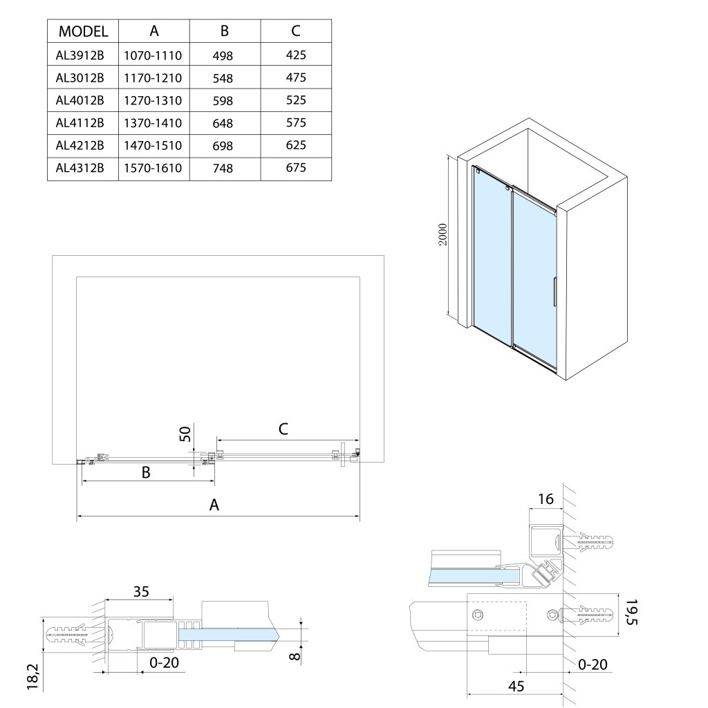 - Az ajtó gyártása során 8 mm vastag biztonsági üveget használnak, kétoldalas ANTIDROP felületkezeléssel a könnyű karbantartás érdekében.