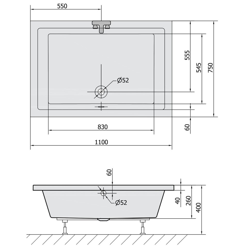 Márka POLYSAN Sorozat MÉLY Méret 110x75x26 cm Hossz 1100 mm Szélesség 750 mm Magasság 260 mm Hangerő 85 l Szín