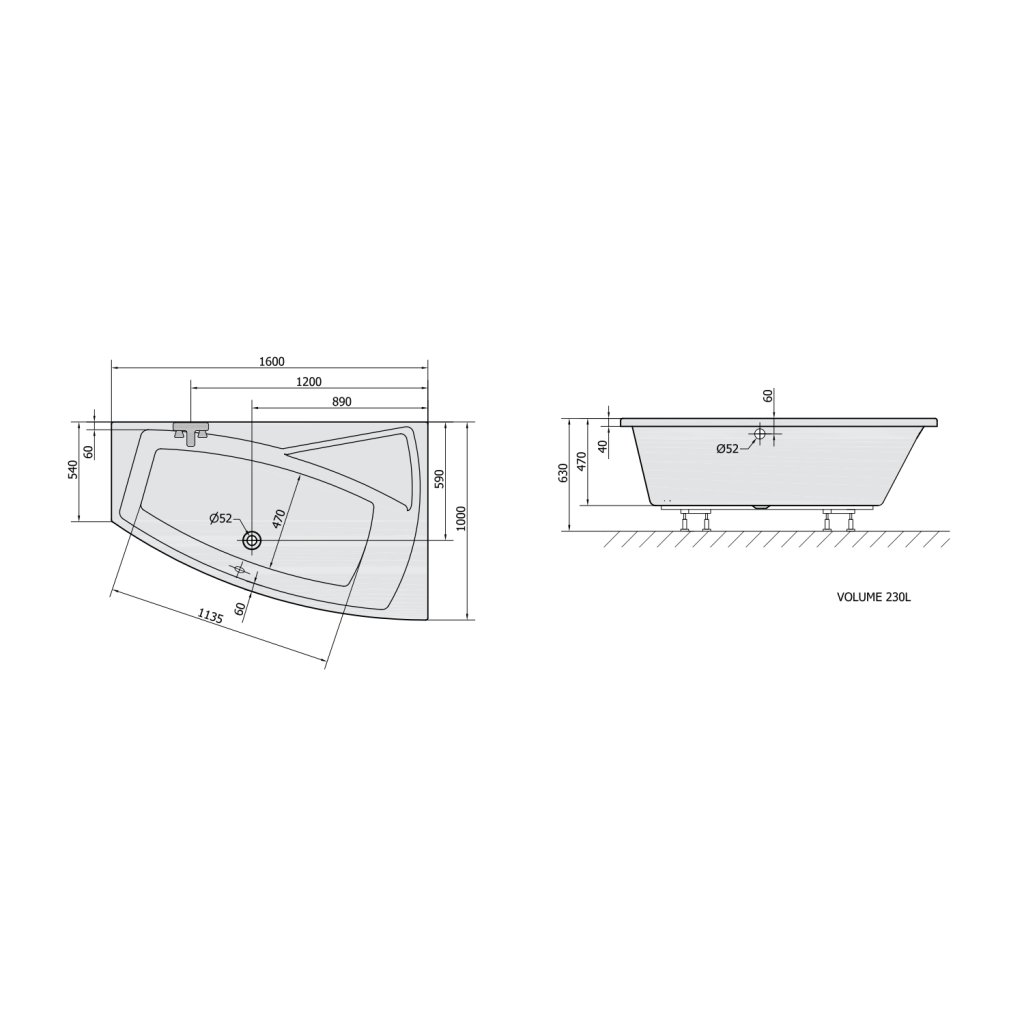 - Az aszimmetrikus kádakat kis fürdőszobákba tervezték