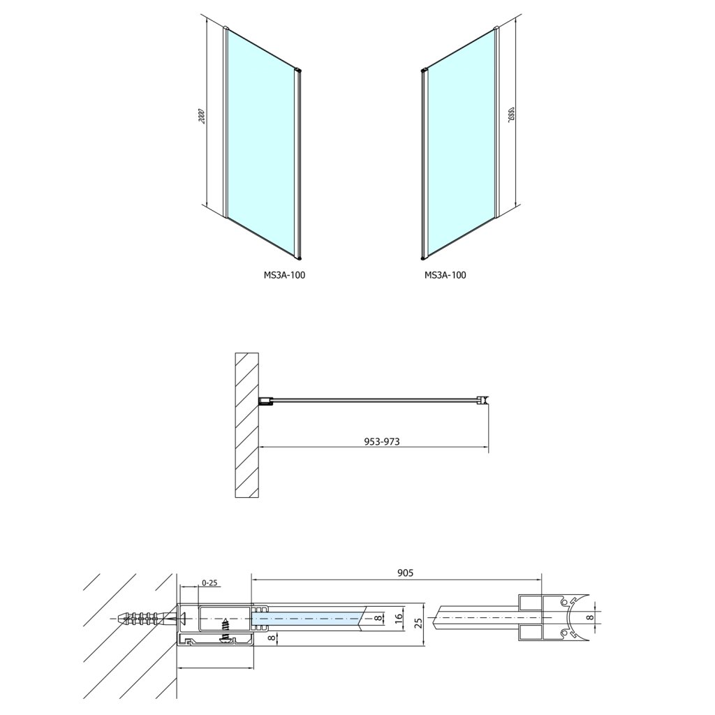 - Ez egy átlátszó üvegből készült fix fal fali profillal, 0-30 mm-ig állítható falra szereléshez