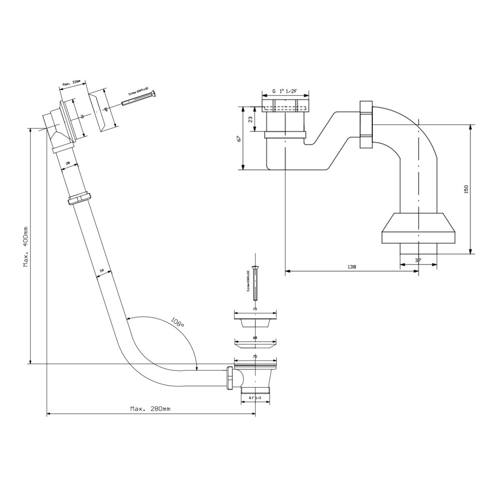 Szabadon álló kádakhoz vagy beépített szifonnal ellátott kádakhoz alkalmas