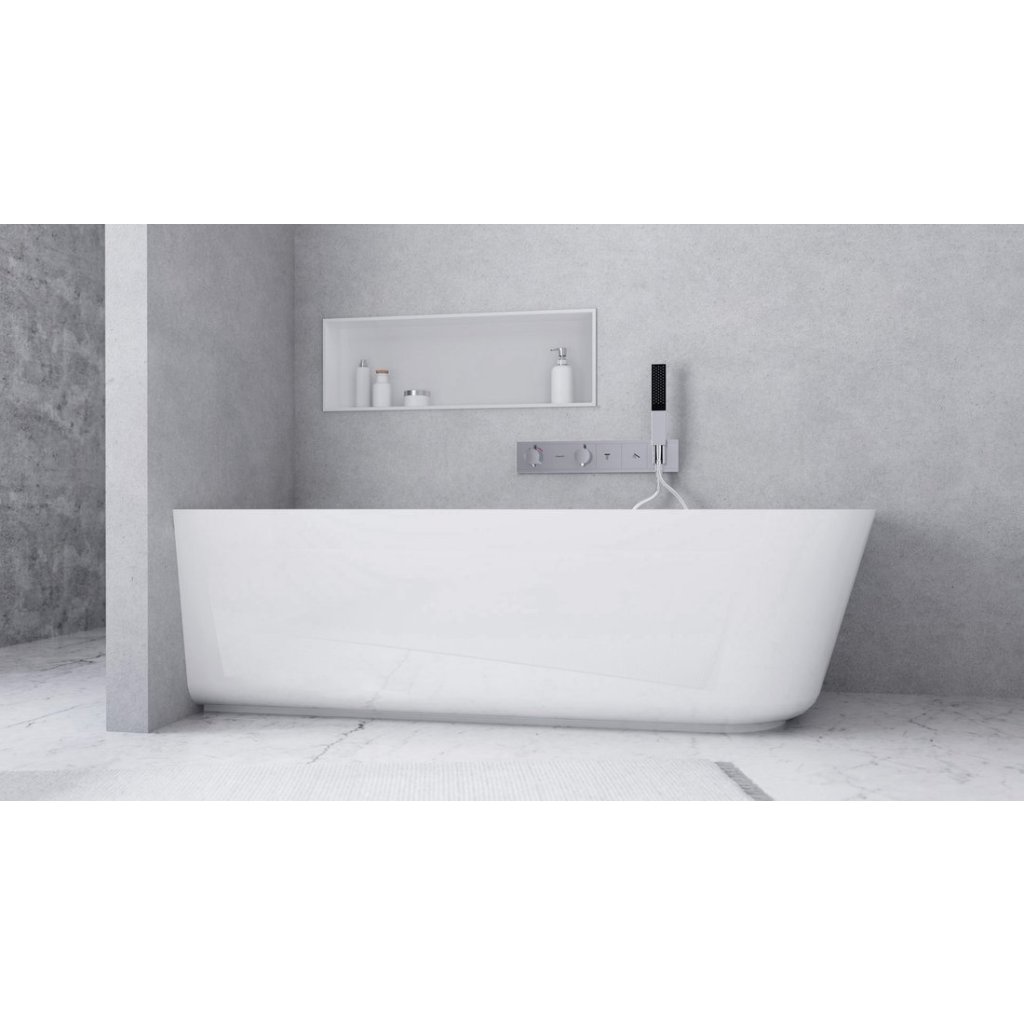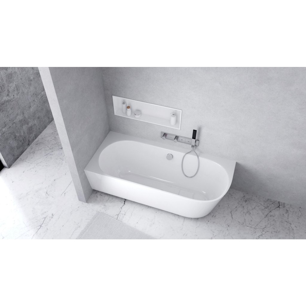 A SUSSI szabadon álló kád nem igényel falazást vagy csempézést. Kialakításának köszönhetően sarokba szerelhető, így érdekes alternatívája a klasszikus sarokkádaknak. A hátlap is látható, így elegánsan mutat a térben.