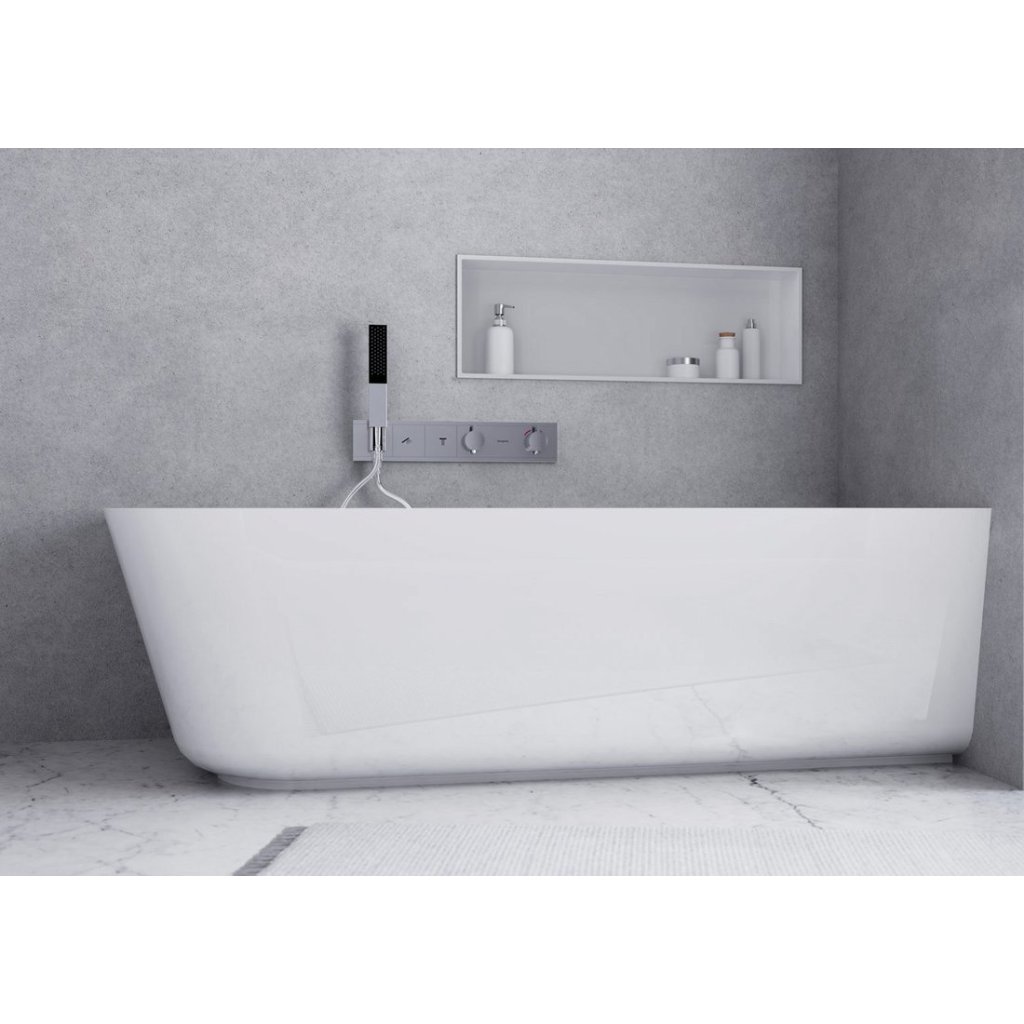 A szabadon álló SUSSI fürdőkád nincs falazva vagy csempézett. Kialakításának köszönhetően sarokba szerelhető, így érdekes alternatívája a klasszikus sarokkádnak. A hátsó oldala is látható, így még a térben is elegánsan fog kinézni.