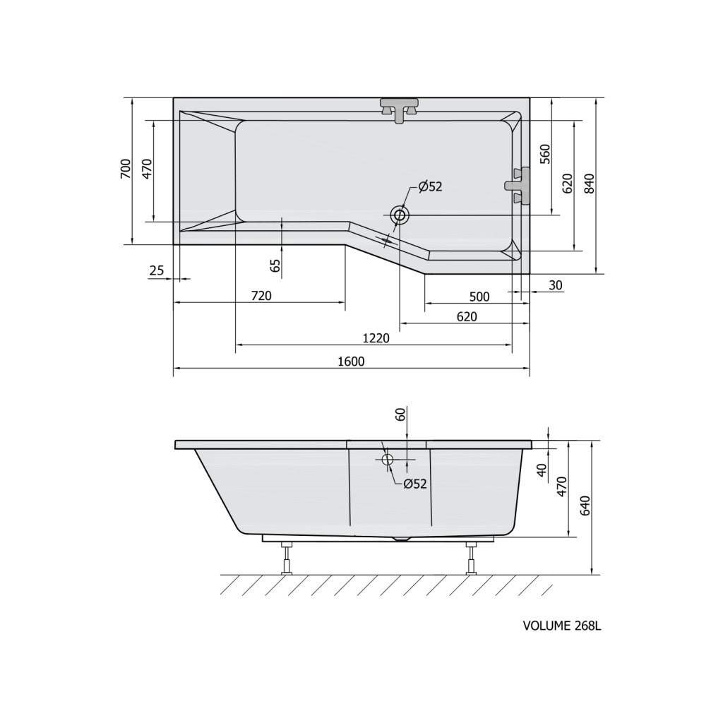 - A kád belső tere nagyobb, mint a klasszikus téglalap alakú kádé