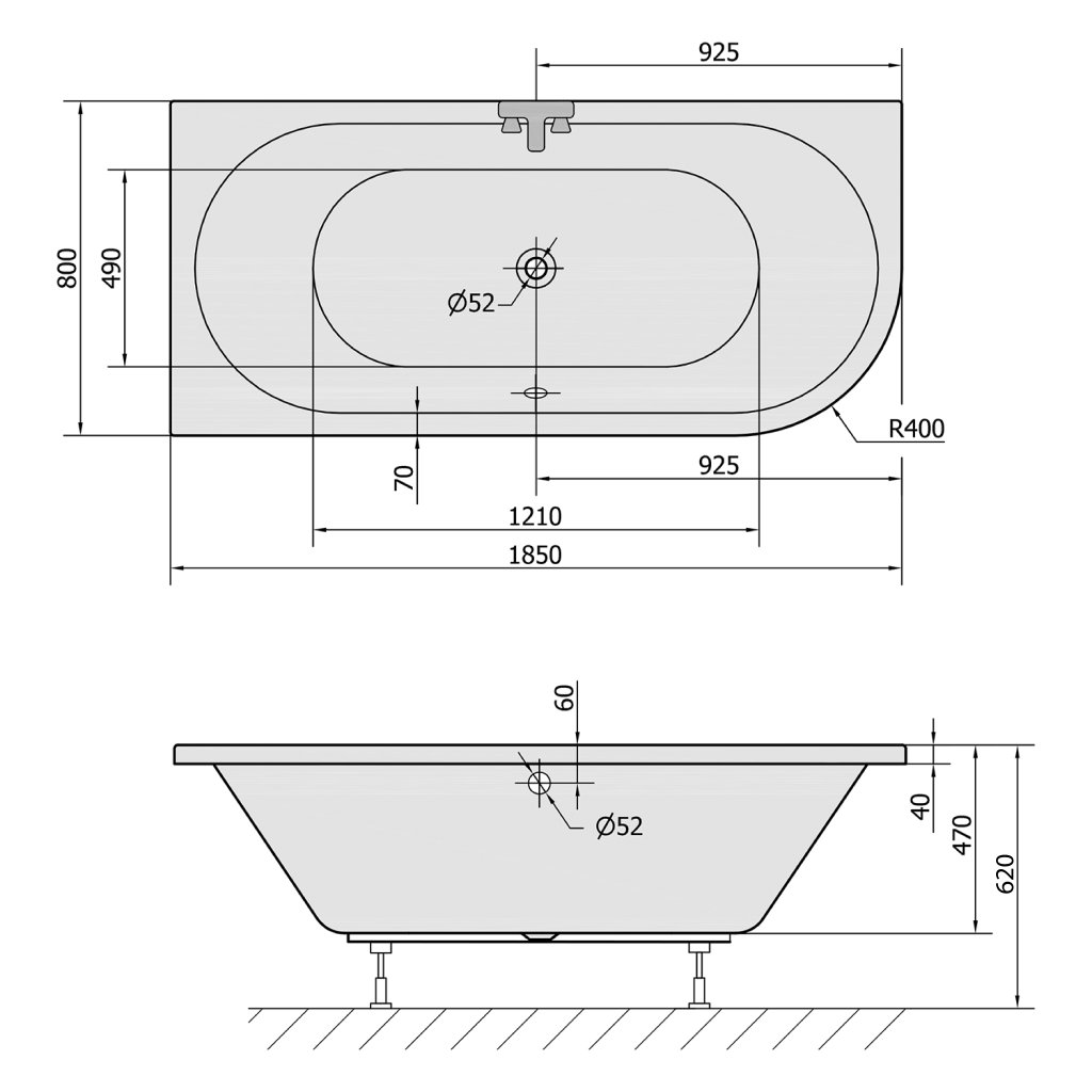 - Az aszimmetrikus kádakat kis fürdőszobákba tervezték