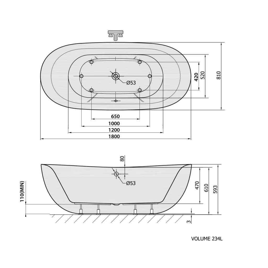 - Figyelem: Min. hosszúságú túlfolyó készletet kell használni. 775 mm. A készlet nem része a fürdőkádnak.