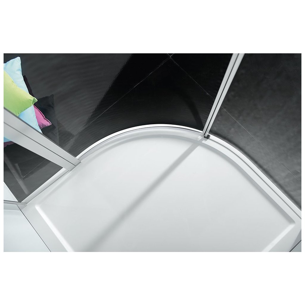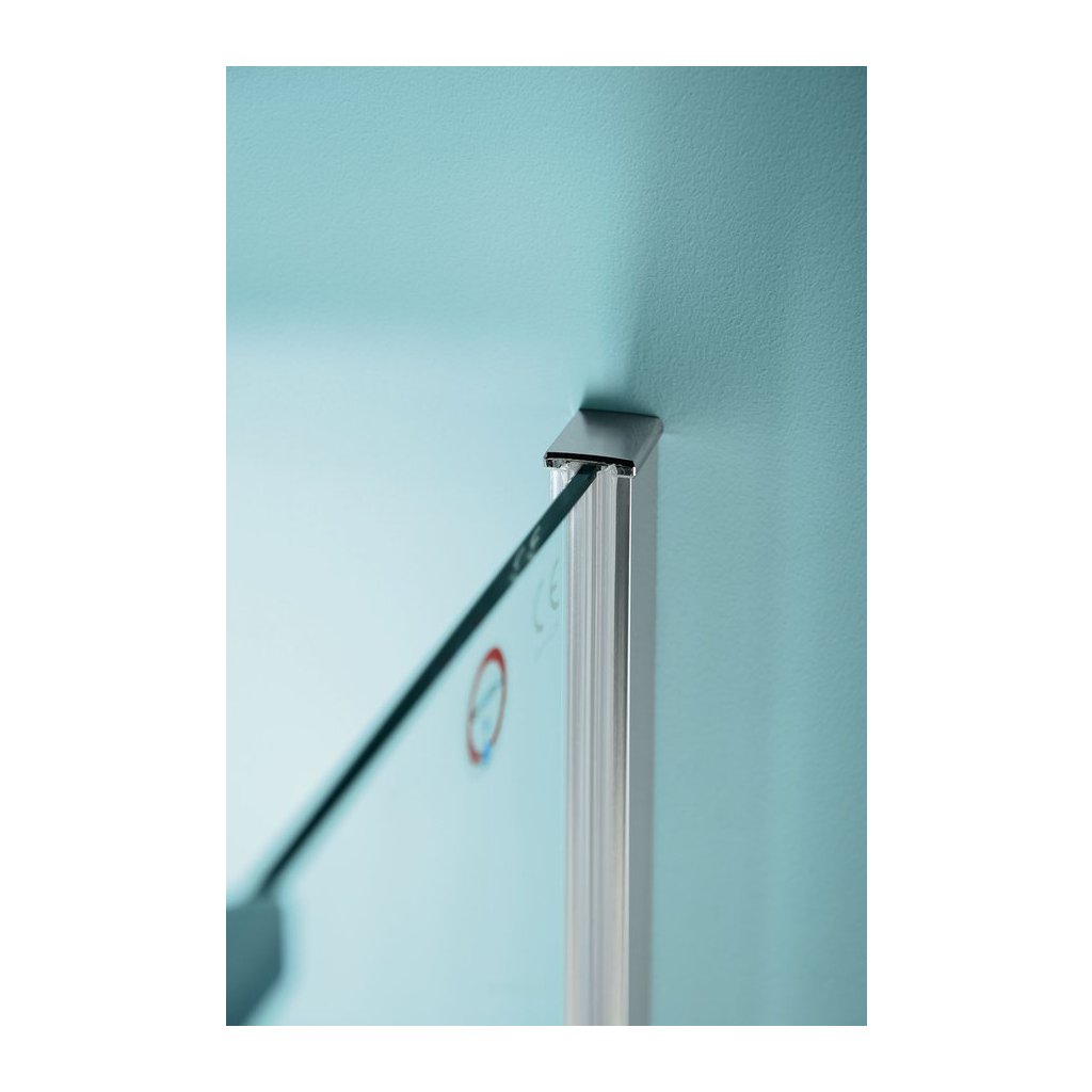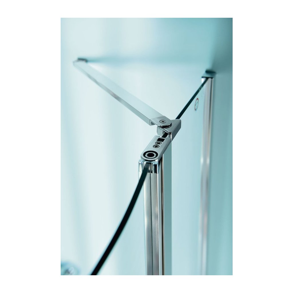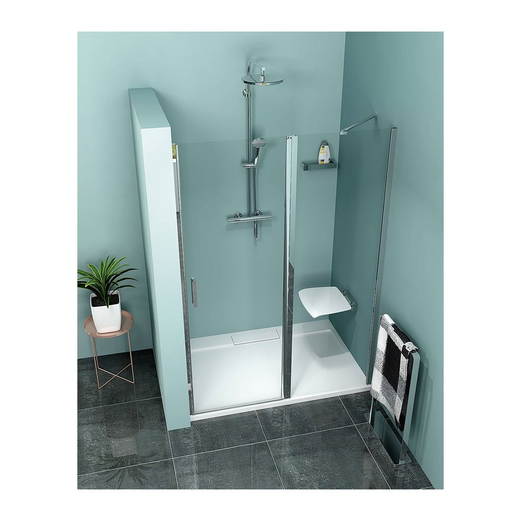 A ZOOM LINE negyedkör alakú képernyő három különböző üvegdarabból áll, míg magát az ajtót 57 cm-es optimális szélességre tervezték. Ez ideális bejáratot és kényelmes nyitást biztosít balra vagy jobbra, ami nem igényel nagy helyet a zuhany előtt. Ez a képernyő csak kifelé nyílik.