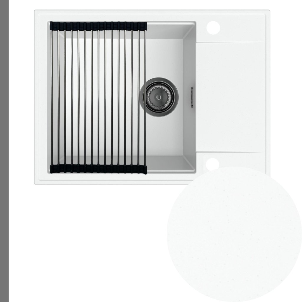 Quality Sink55 gránit mosogató, 620x460x215 mm + grafit szifon, fehér, SKQ-SINK.W.1KKO.XB