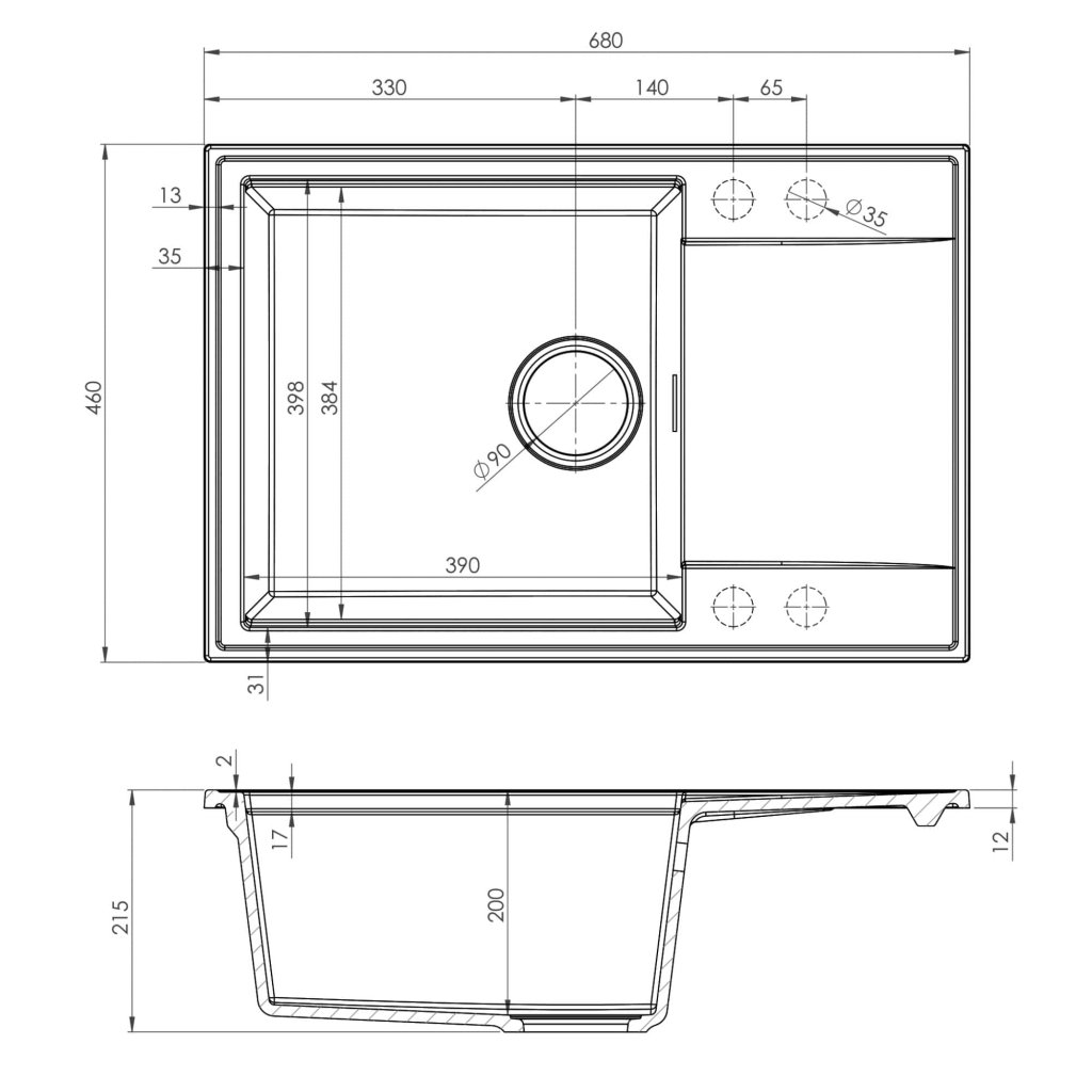 - Fúrt lyukak száma: 2 (1 konyhai csaptelepnek, 1 mosószeradagolónak vagy automata szifonnak)