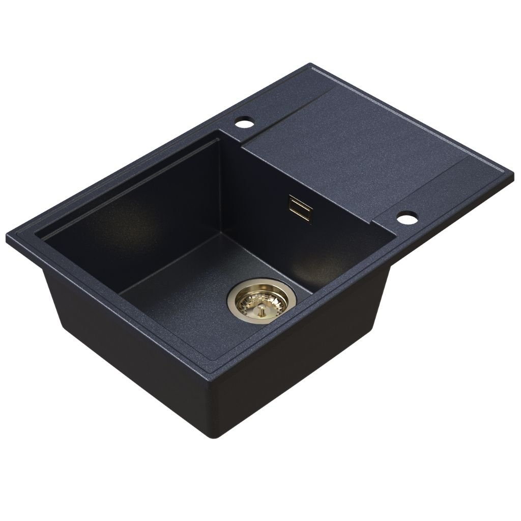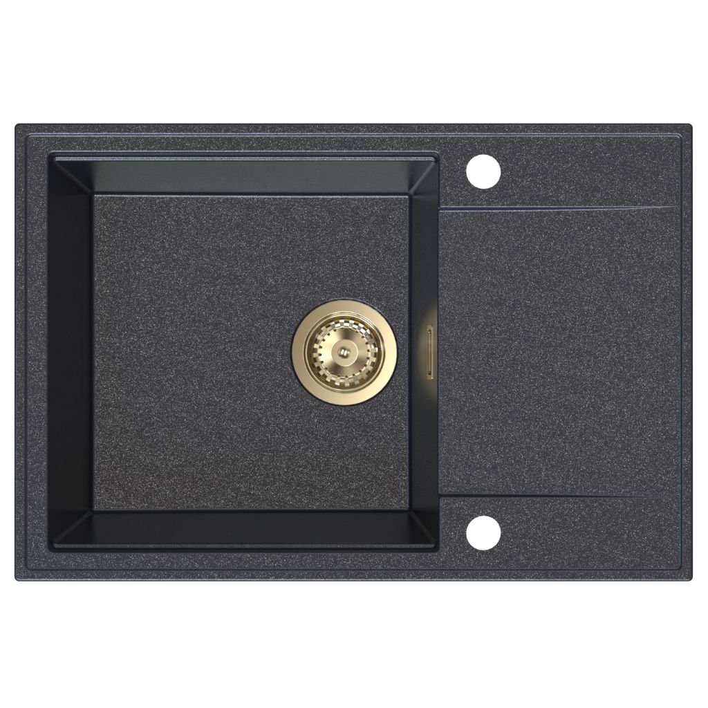 Quality Sink55 gránit mosogató, 680x460x215 mm + arany szifon, fekete pettyes, SKQ-SINK.B.1KDO.XG