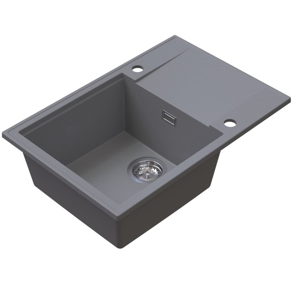Quality Sink55 gránit mosogató, 680x460x215 mm + króm szifon, szürke, SKQ-SINK.D.1KDO.X