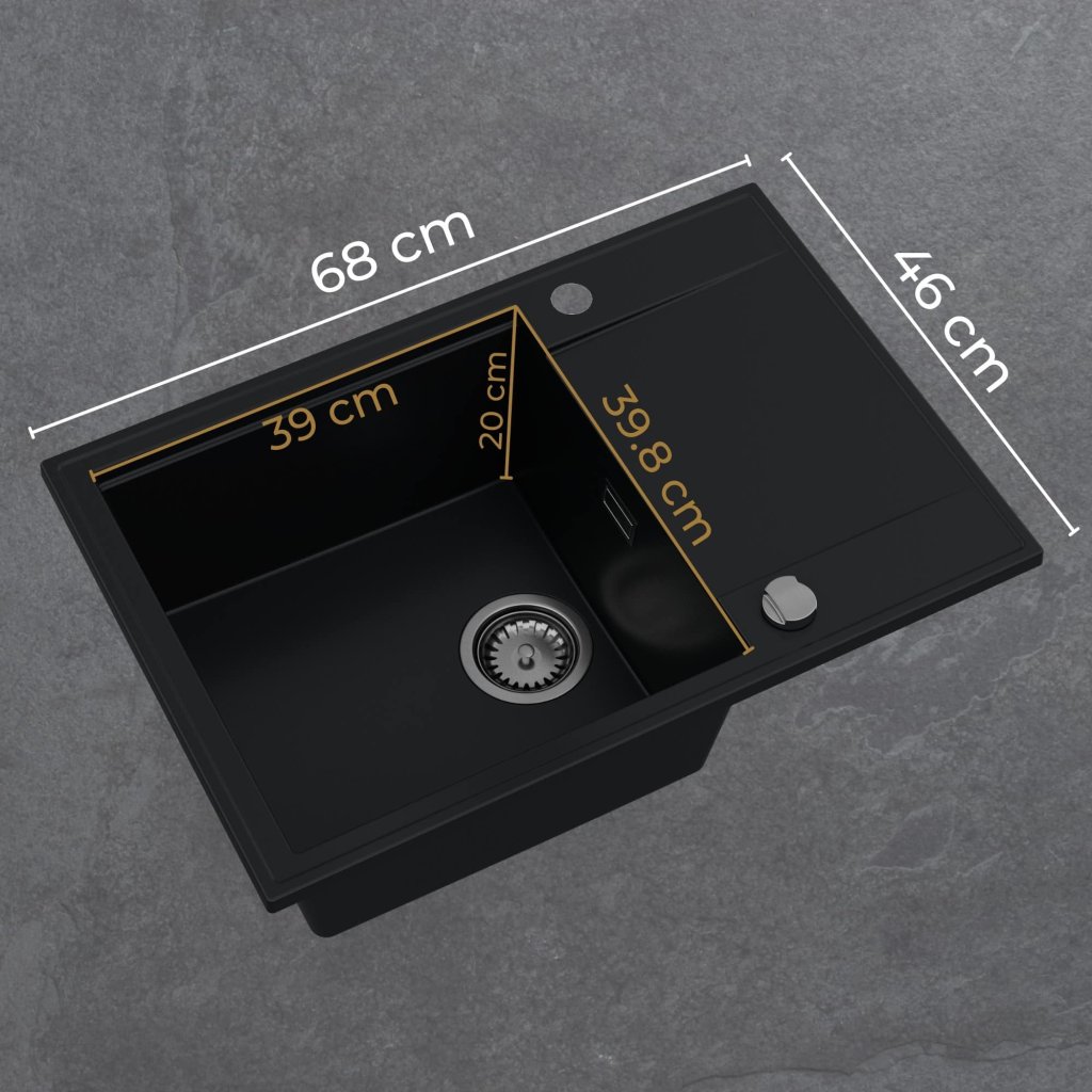 - Nanogránit mosogató 2 gyárilag fúrt lyukkal (csaptelep lyuk és mosószeradagoló lyuk)