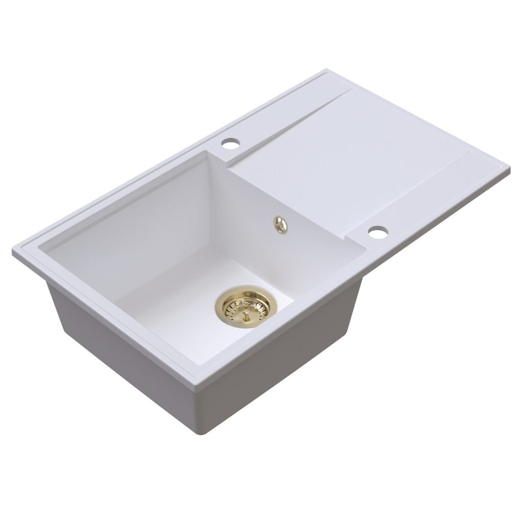 Quality Sink55 gránit mosogató, 780x460x215 mm + arany szifon, fehér, SKQ-SINK.W.1KDOL.XG