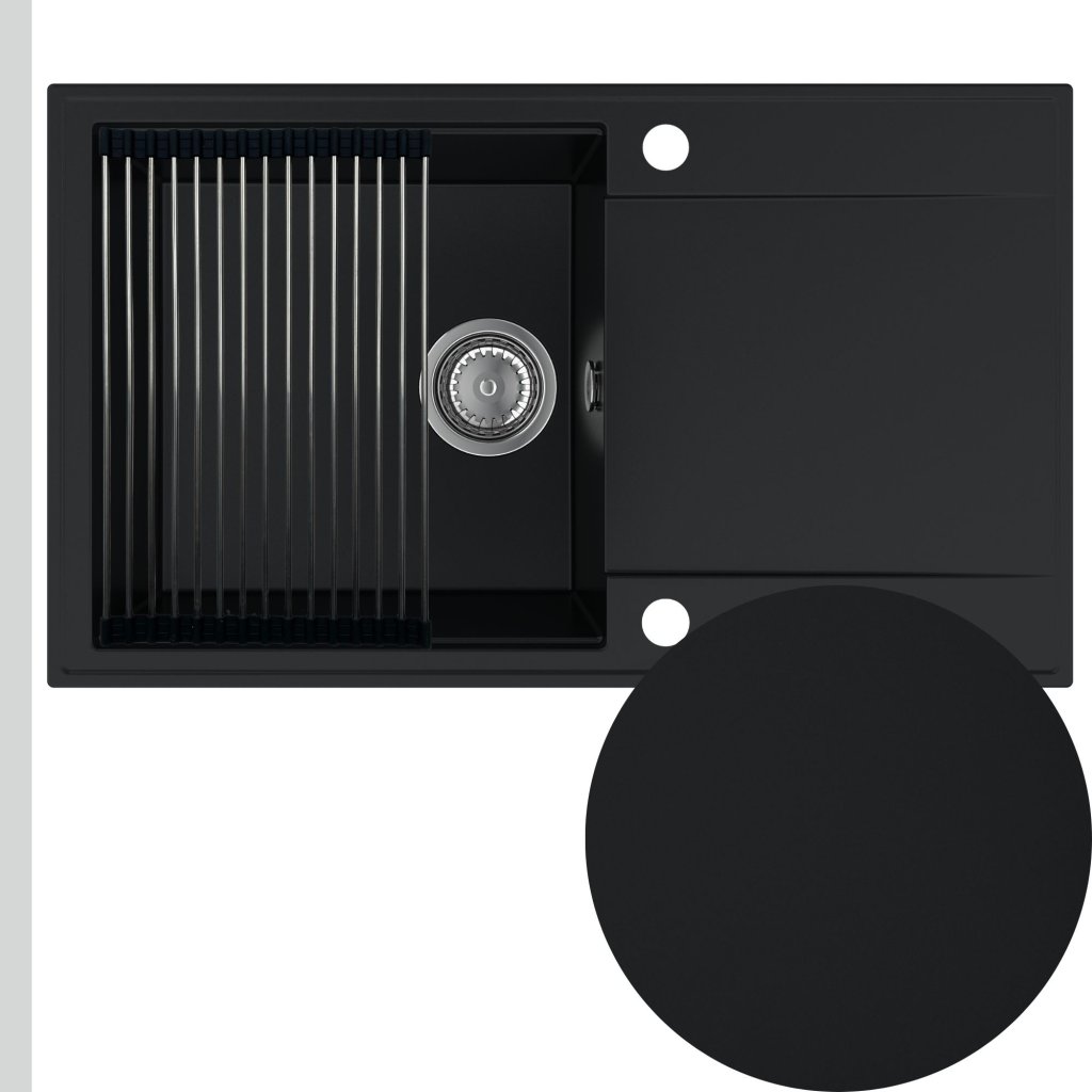Quality Sink55 gránit mosogató, 780x460x215 mm + króm szifon, fekete, SKQ-SINK.C.1KDOL.X