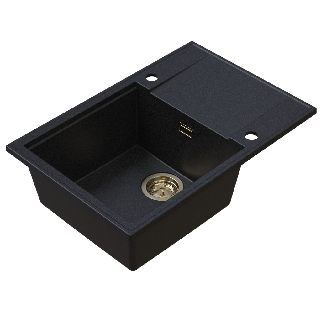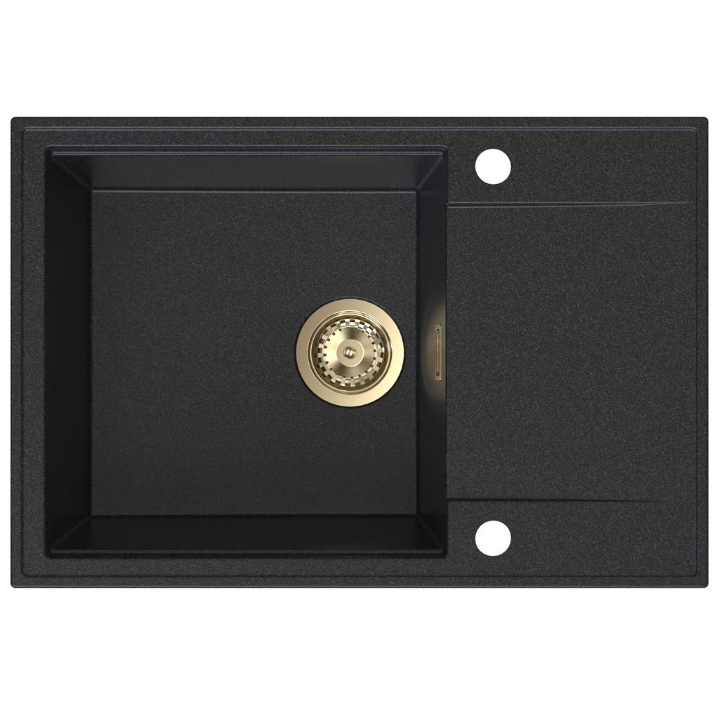 Quality Sink55 mosogató, gránit konyhai mosogató 680x460x215 mm + arany szifon, grafit, SKQ-SINK.G.1KDO.XG