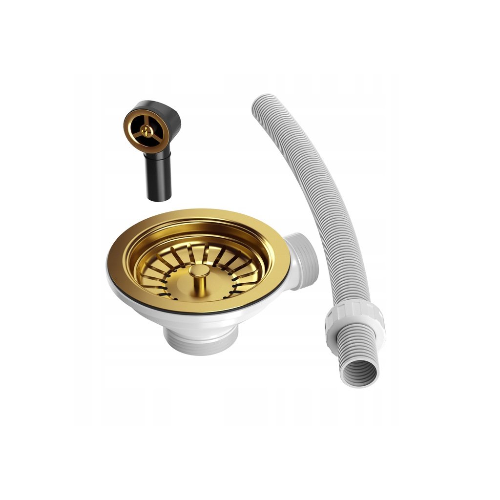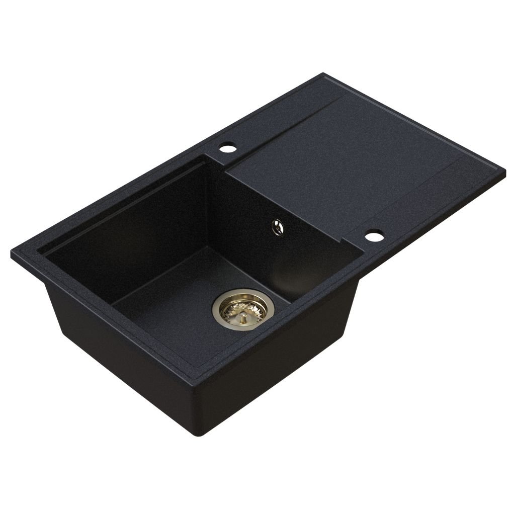 Quality Sink55 mosogató, gránit konyhai mosogató 780x460x215 mm + arany szifon, grafit, SKQ-SINK.G.1KDOL.XG