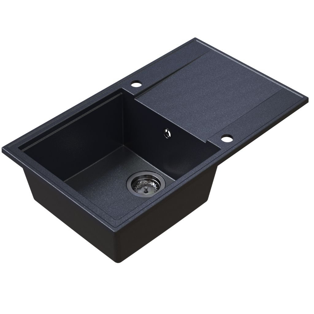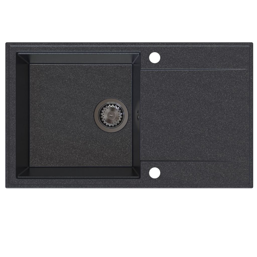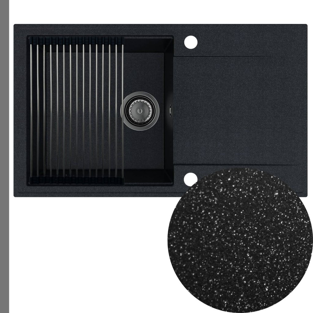 Quality Sink55 mosogató, gránit konyhai mosogató 780x460x215 mm + grafit szifon, fekete pettyes, SKQ-SINK.B.1KDOL.XB