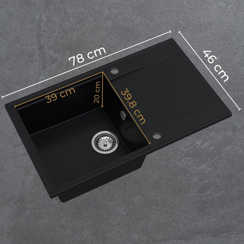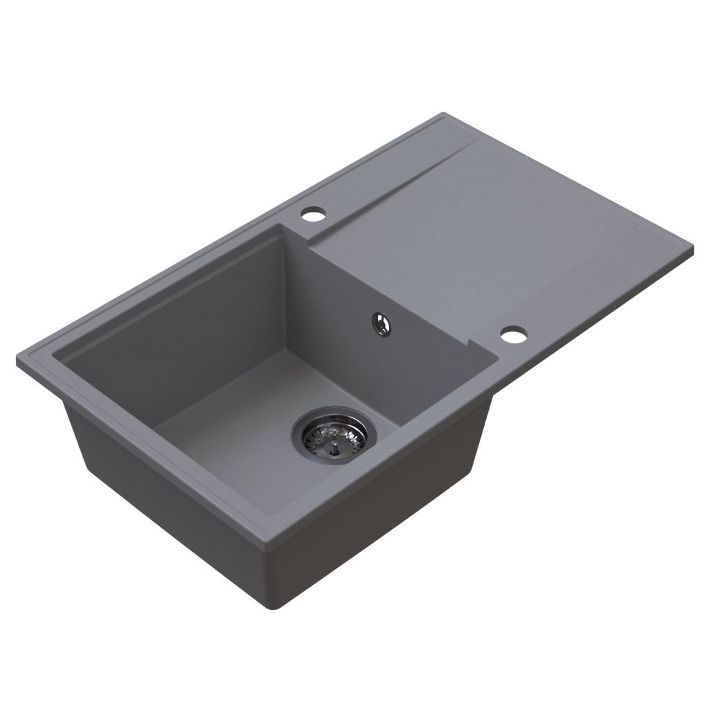 Quality Sink55 mosogató, gránit konyhai mosogató 780x460x215 mm + grafit szifon, szürke, SKQ-SINK.D.1KDOL.XB