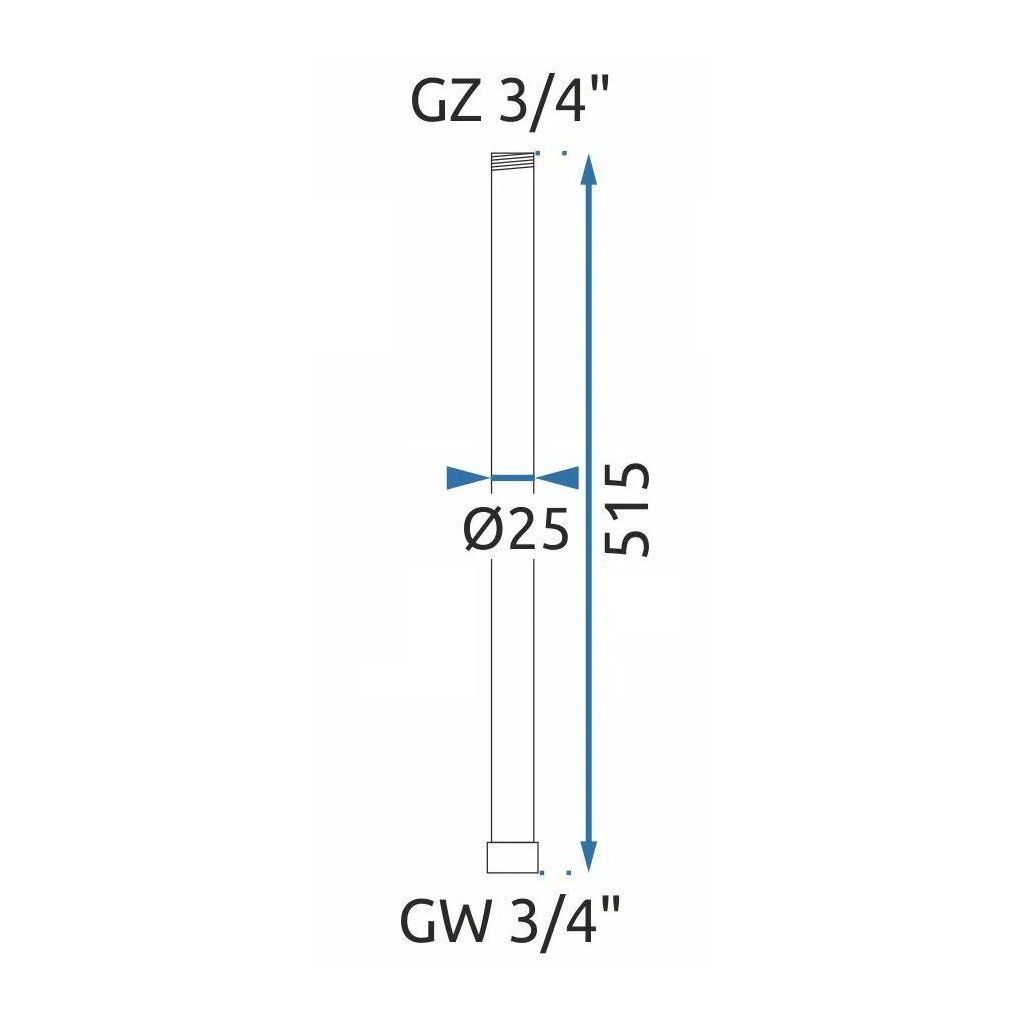 Hosszabbító adapter - a hosszabbító lehetővé teszi az esőzuhany magasabbra helyezését, mint a normál felületű fürdőkád és zuhanykészletben. A bővítmény sárgarézből készült.