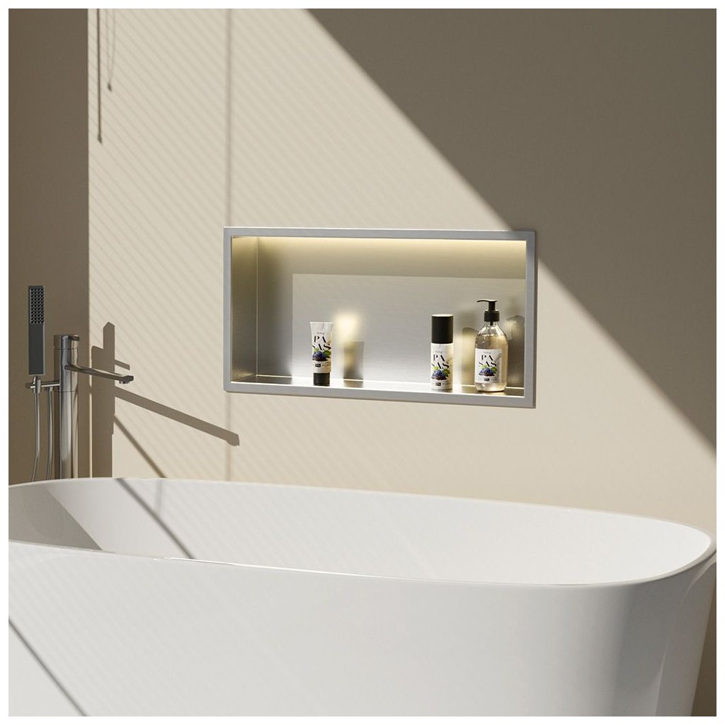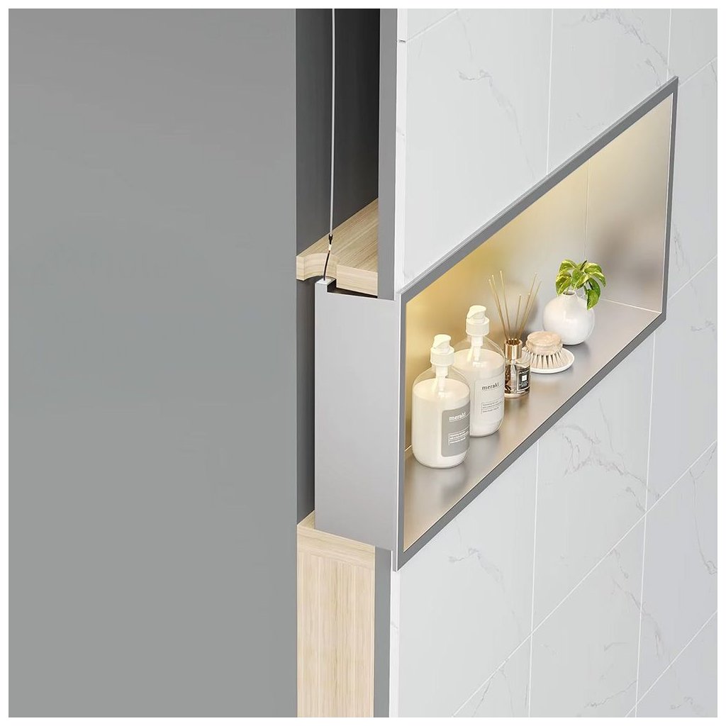 A süllyesztett LED acél polc a modern dizájn és a praktikus felhasználás ötvözete. A legmagasabb minőségű AISI 304 rozsdamentes acélból készült, ellenáll a nedvességnek, a korróziónak és az intenzív használatnak. Nemes felületkezelése eleganciát kölcsönöz a belső térnek, az anyag tartóssága pedig évekig tartó tökéletes megjelenést biztosít.