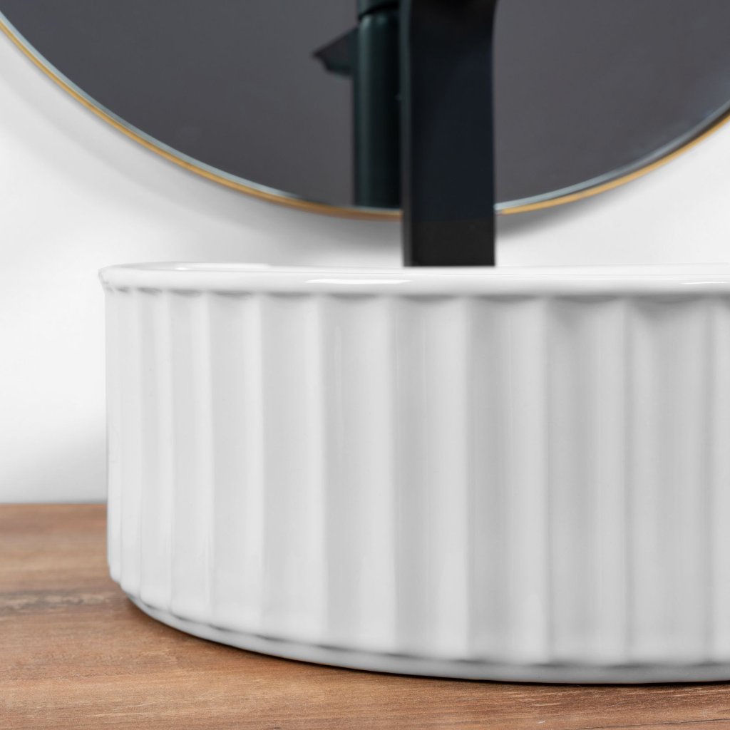 Bemutatjuk Önnek a Rea Cleo sorozat új, modern pultlapos mosogatóját. A téglalap alakú mosdókagyló a legjobb minőségű anyagokból készül, jellemzői minden igényt kielégítenek. Ezt a modellt mindenekelőtt azok a vásárlók fogják értékelni, akik nem csak funkcionális, hanem esztétikus megoldást is keresnek. A mosogató munkalapra szerelhető, de szekrénnyel is kombinálható. Ezenkívül egy speciális gyártási fázisnak köszönhetően a fehér, fényes kialakítású, nemes arany szegélyű mosogató könnyen tisztítható és nagyon tartós.Kiegészítő paraméterek