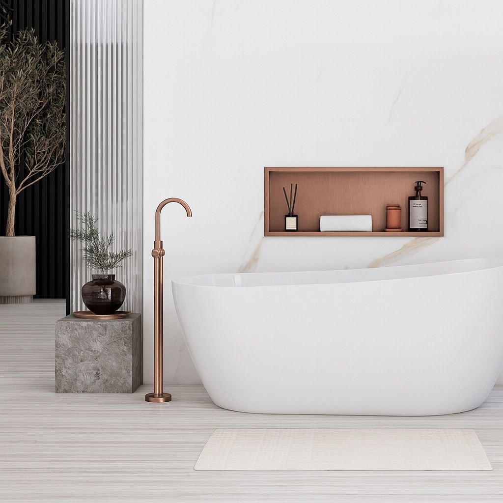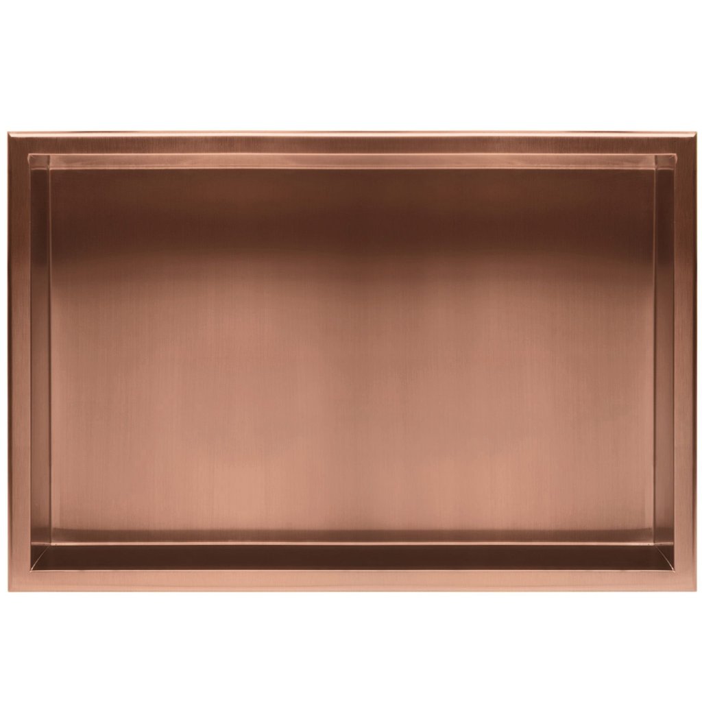 A beépített fürdőszobai polc szálcsiszolt rézből egy elegáns és funkcionális megoldás, amely lehetővé teszi a zuhanyzóban vagy a kád feletti tér praktikus kihasználását. Kiváló minőségű Aisi 304 rozsdamentes acélból készült, ellenáll a nedvességnek, a korróziónak és a mindennapi használatnak, így ideális választás modern fürdőszobákba. A fülkébe való beépítésnek köszönhetően a polc esztétikus, minimalista hatást kelt, ugyanakkor kényelmes helyet kínál kozmetikumok, fürdőszobai kiegészítők vagy ápolási termékek tárolására. Szálcsiszolt réz felülete tökéletesen illik a hasonló árnyalatú szerelvényekhez és kiegészítőkhöz, és kiemeli a belső tér modern jellegét.