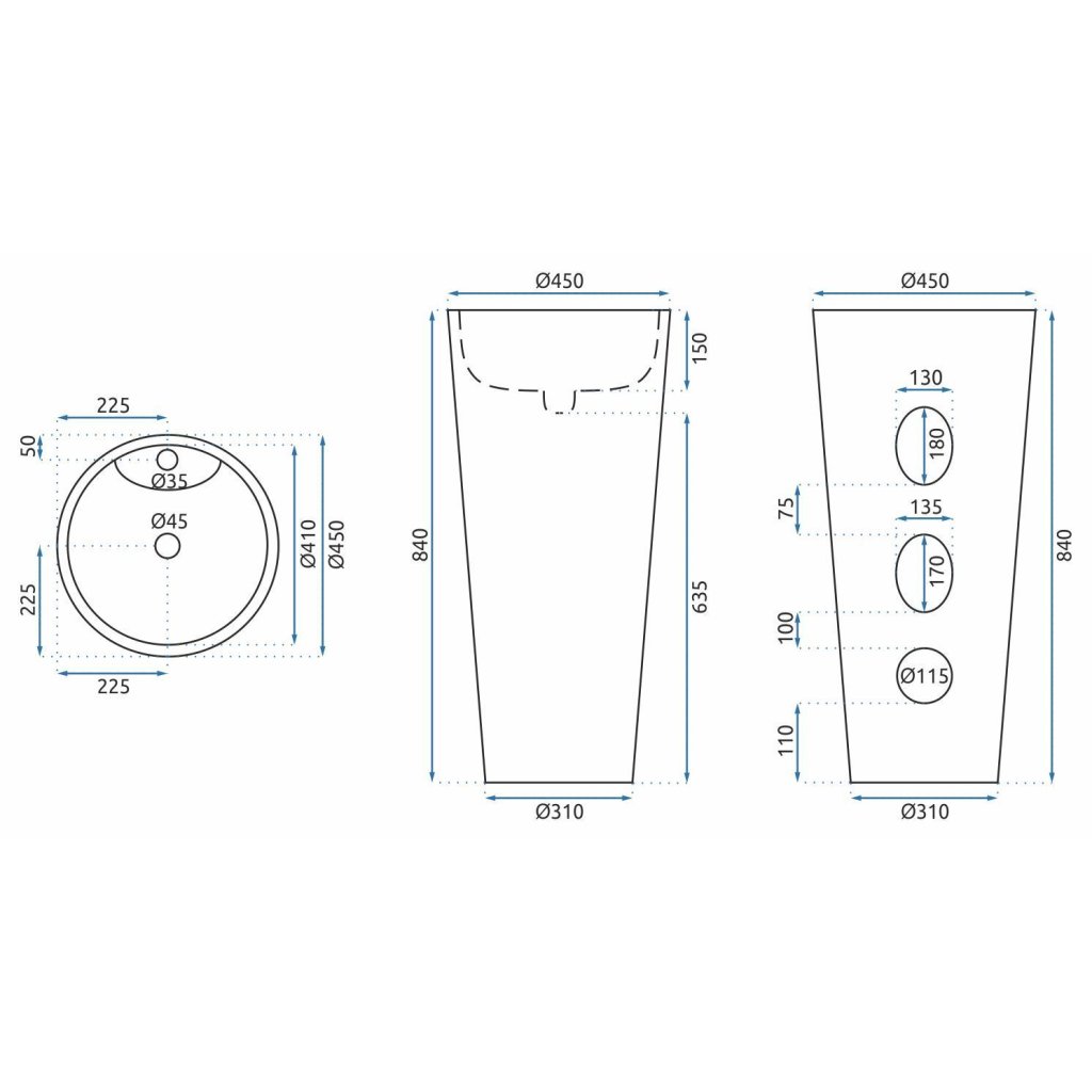 Rea Anya, szabadon álló mosogató 45x45x84 cm, kőutánzat - matt gránit, REA-U5802