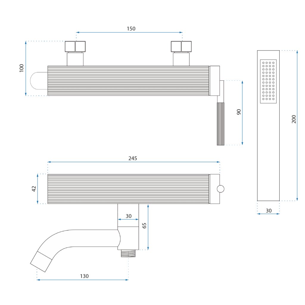 - A kézi zuhanyfej méretei: 3 x 20 cm