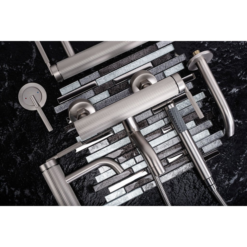 - Elegáns dizájn: A szálcsiszolt acél és a barázdált felület kombinációja kiemeli a fürdőszoba modern stílusát.