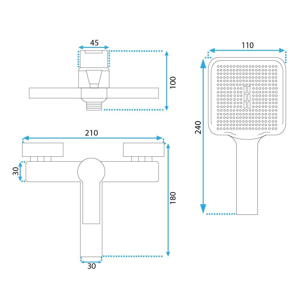 - A kézi zuhanyfej méretei: 11 x 23,5 cm