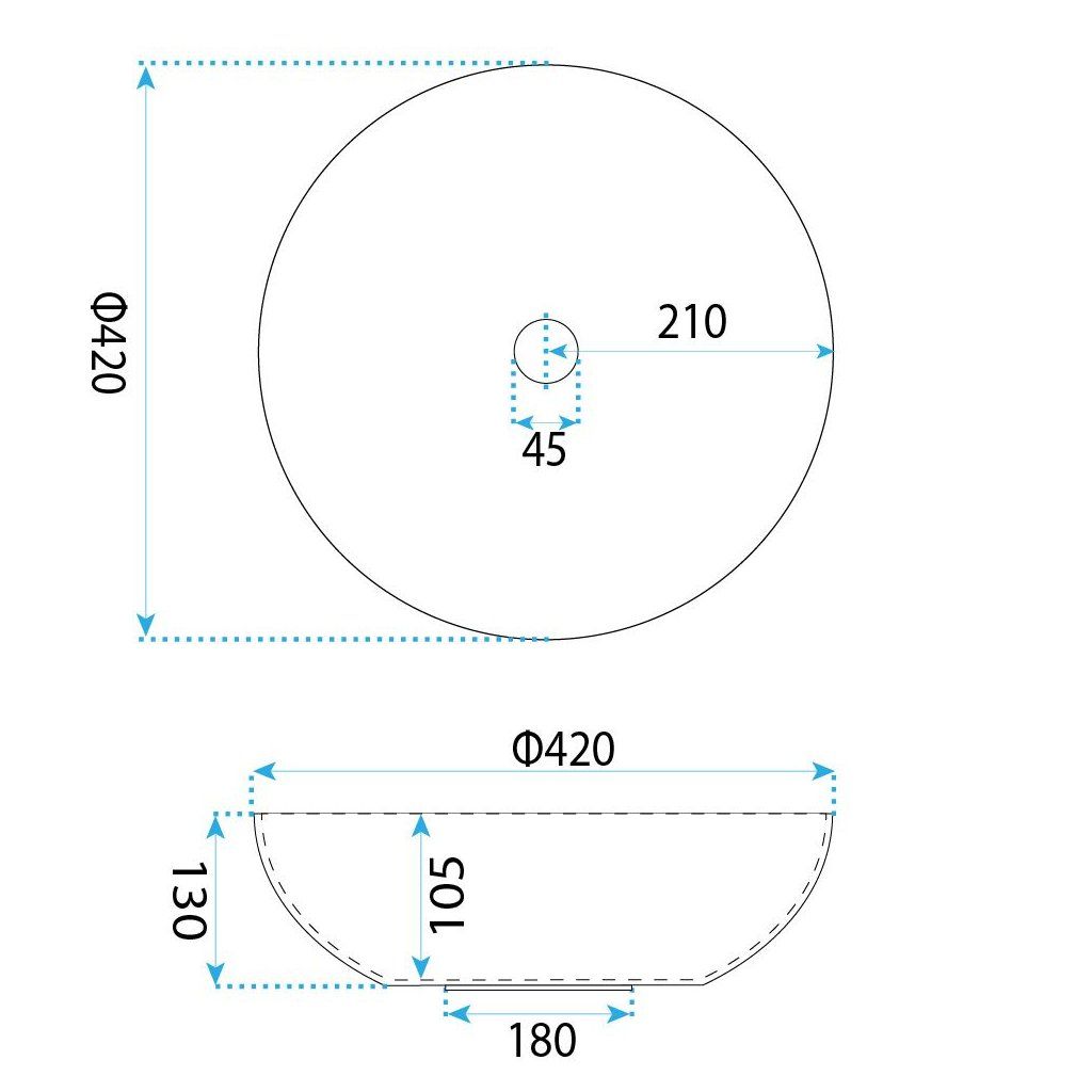 - Méretek ∅420×130 mm, medencemélység 105 mm