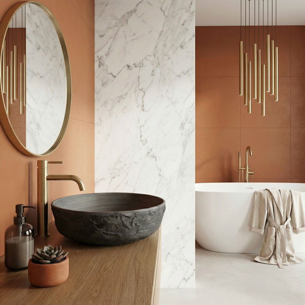- Ideális kombináció réz, arany vagy fekete szerelvényekkel