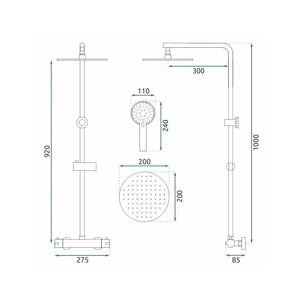 - A készlet tartalma: csaptelep, zuhanycső kézi zuhanyfejjel, esőzuhany, fejtartó