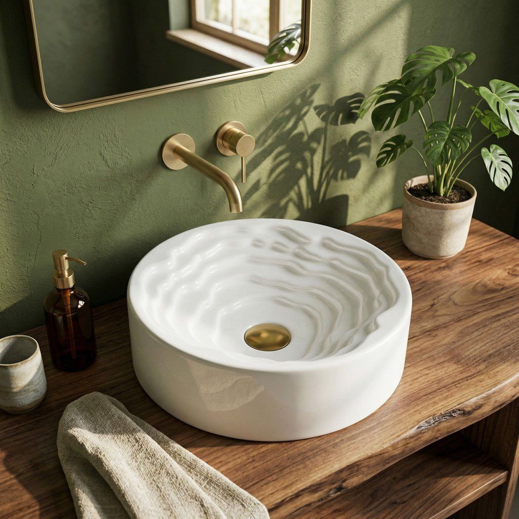 A hófehér, fényes máz nem csupán esztétikai választás – aktívan kölcsönhatásban áll a belső háromdimenziós szerkezettel. Minden szögből visszaveri a fényt, és kiemeli a kaszkádszerű dombormű minden vonalát, így a funkcionális elem vizuálisan lenyűgöző tárggyá válik.