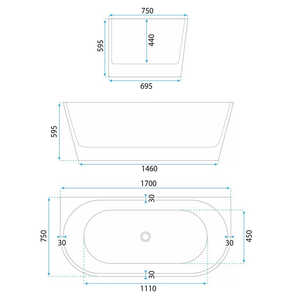 Rea Capri, szabadon álló akril kád 170x75 cm, fehér, REA-W9801