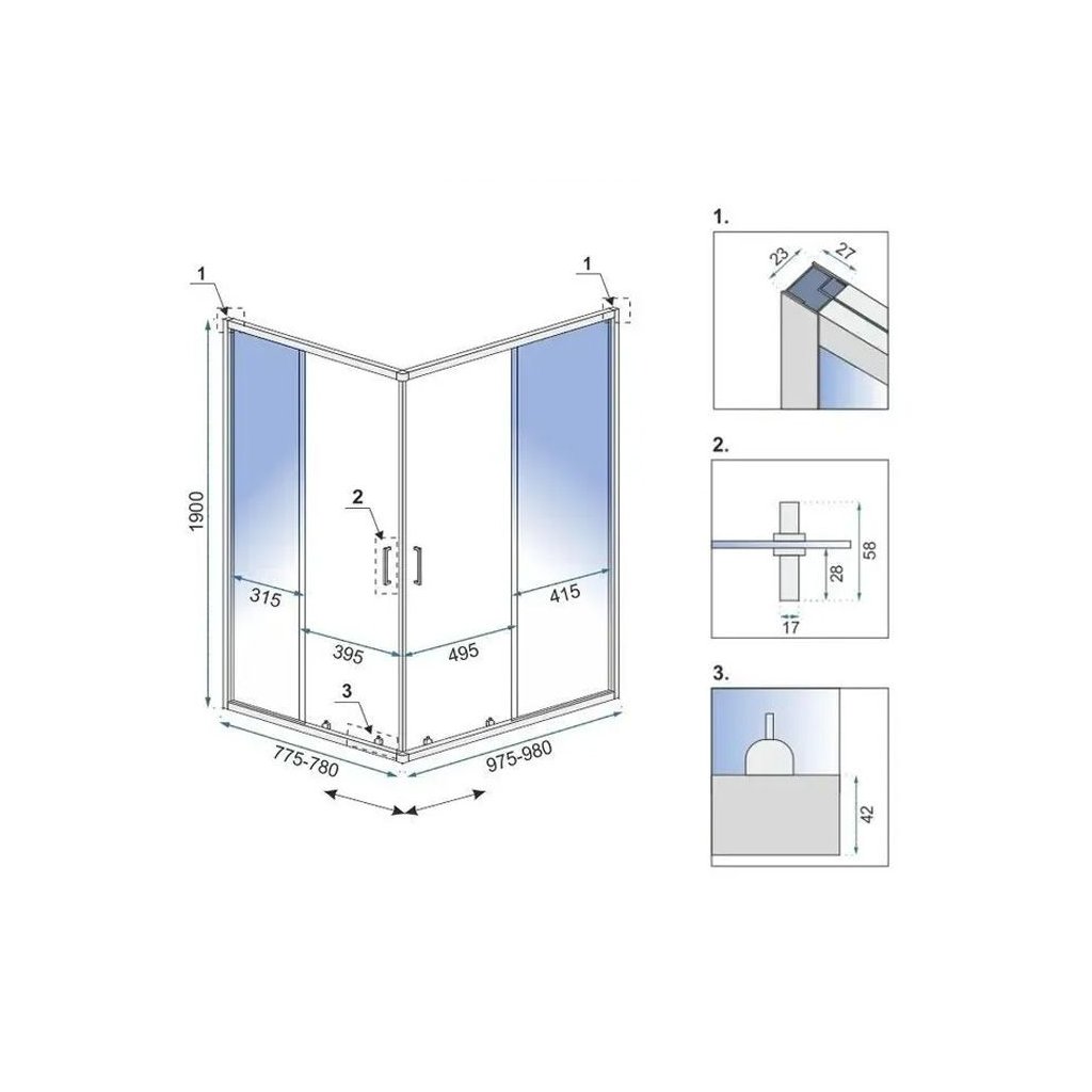 - Üvegvastagság: 5 mm - mozgatható üveg, 4 mm - fix üveg