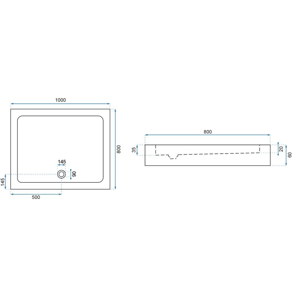 - Típus: Négyszögletű zuhanytálca