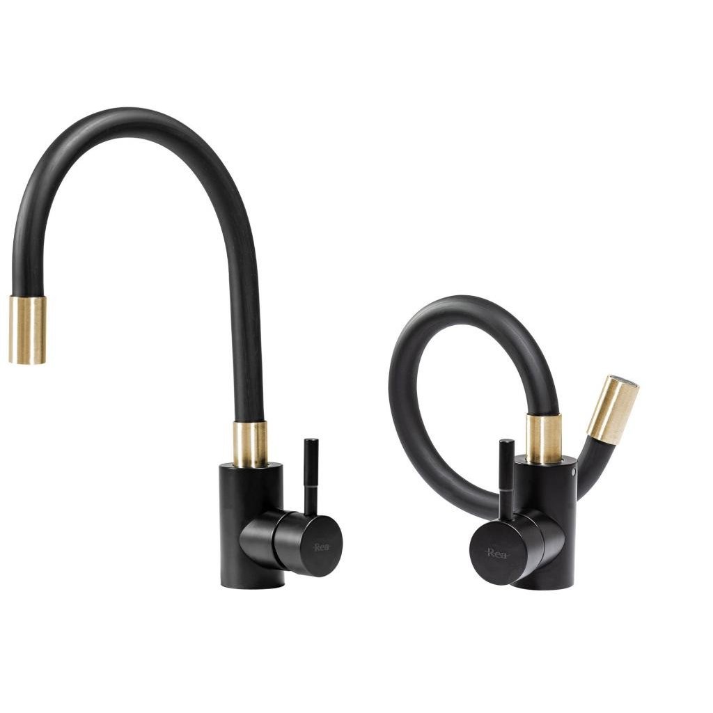 Rea Clever, mosogatócsaptelep flexibilis karral, fekete-arany, REA-B5698