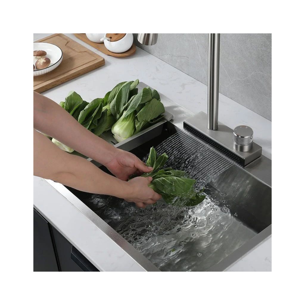 A vízesés panel, amellyel a Conor akkumulátor fel van szerelve, megnöveli annak funkcionalitását, és lehetővé teszi a zöldségek és gyümölcsök kényelmes mosását. A vízesés sodrása enyhe, egyenletes, ezért kerüljük a fröccsenést.
