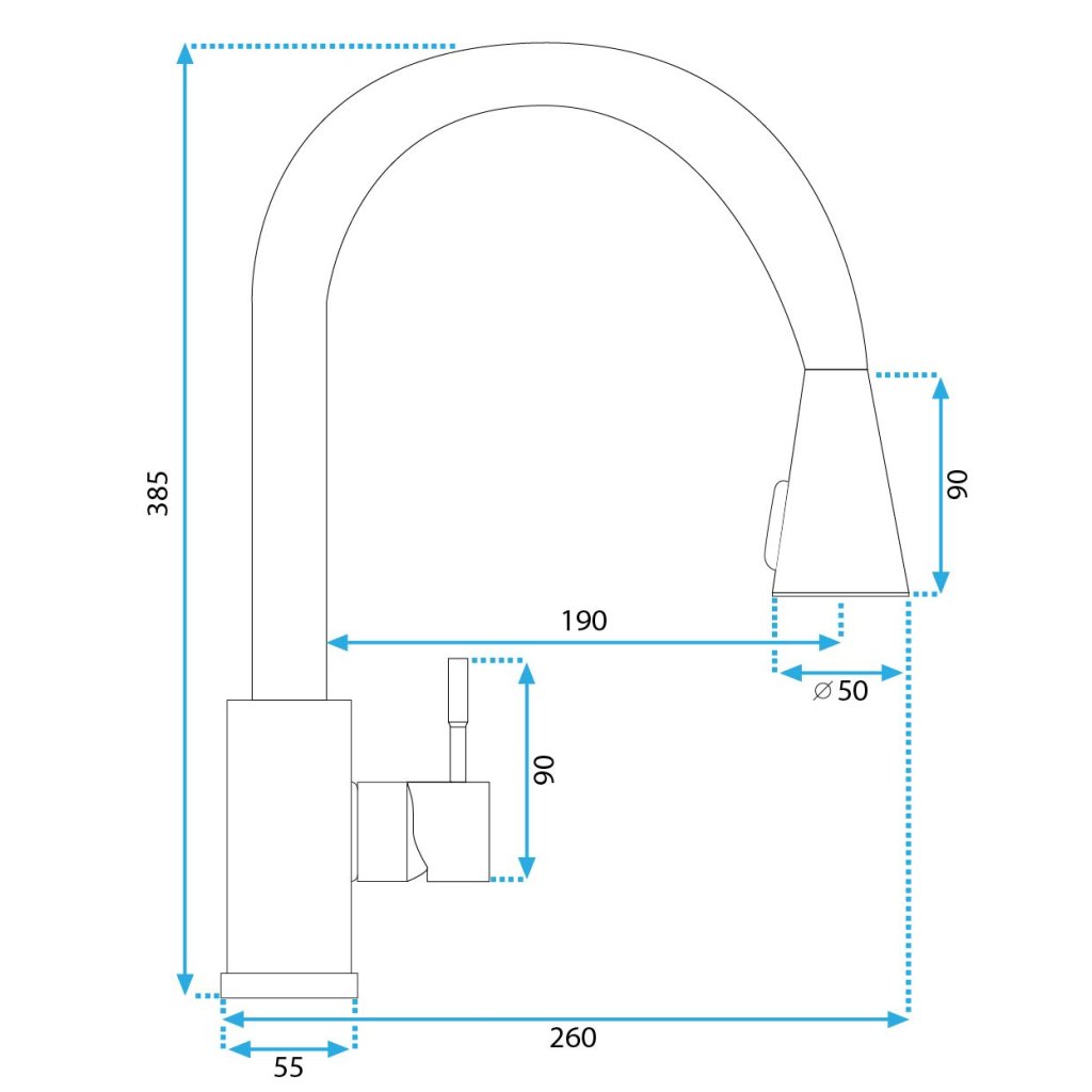 Rea Cross, konyhai csaptelep kihúzható kifolyóval h-385, króm, REA-B5310