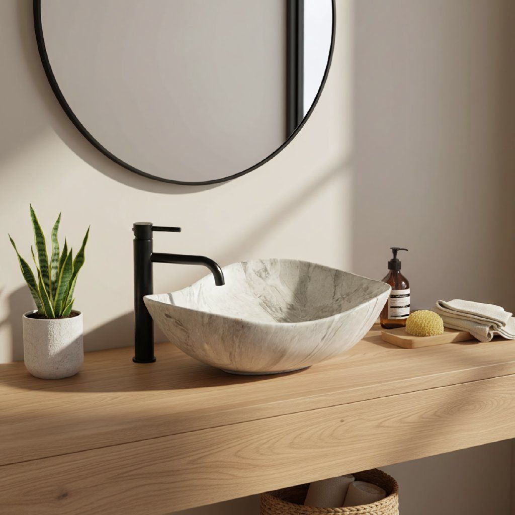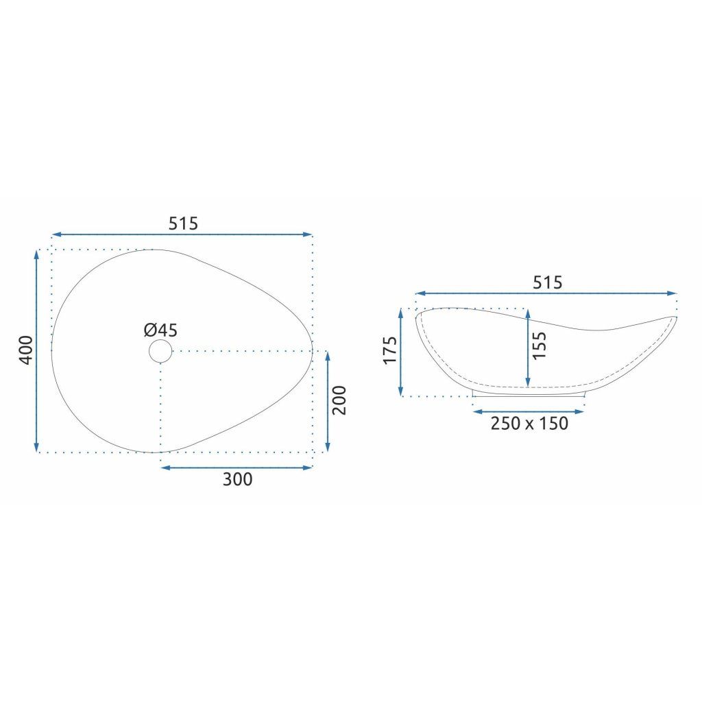 Rea Dora Stone, asztali mosdó 515x400x175 mm, szürke kőutánzat, REA-U5066