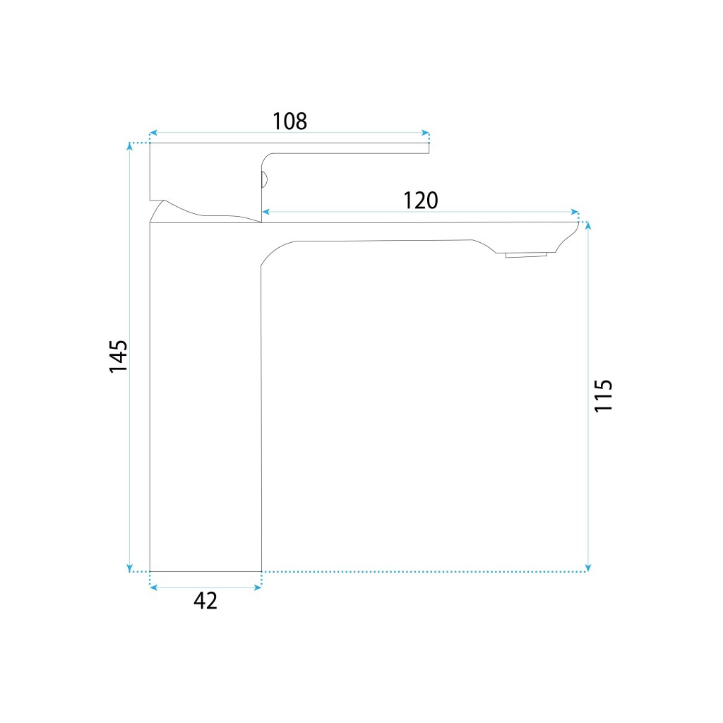 - Kifolyócső hatótávolsága: 120 mm