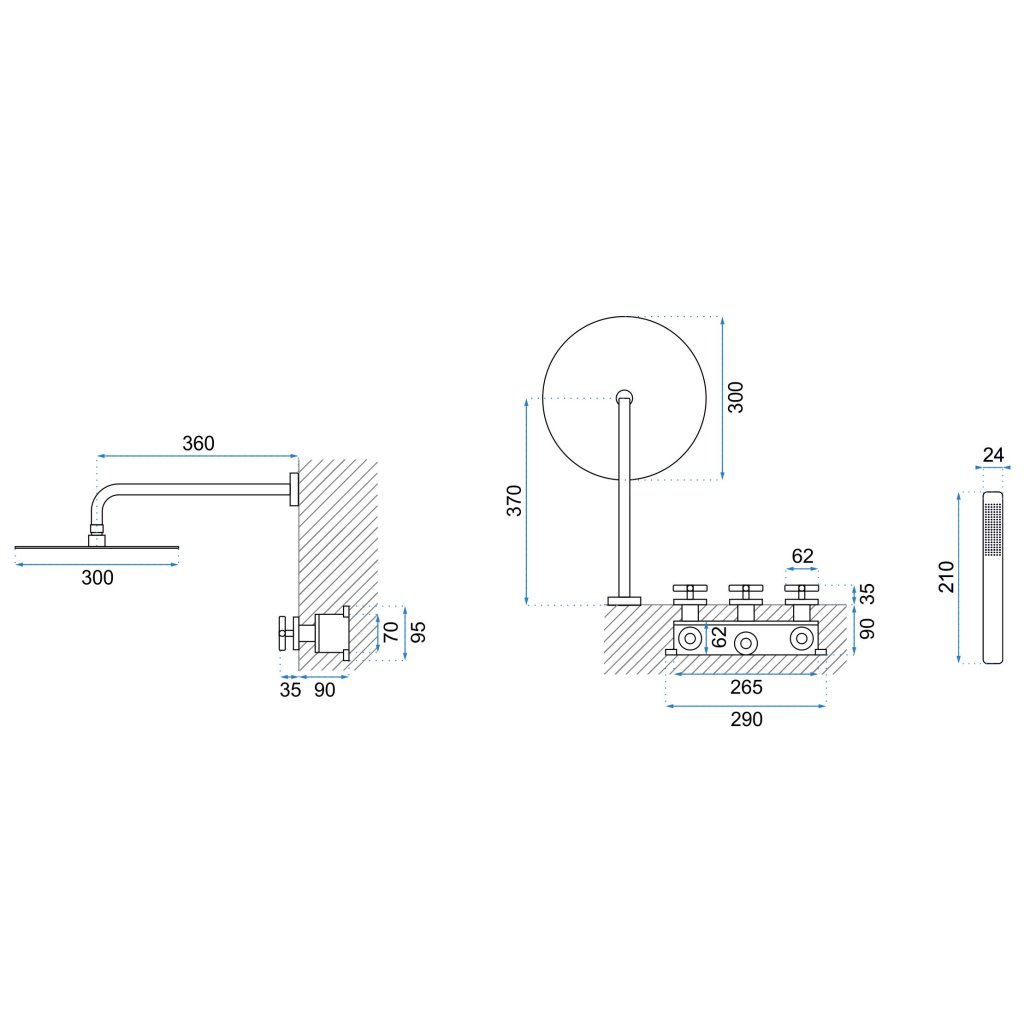 fej 300mm, doboz, ponttartó kézizuhanyhoz tápegységgel