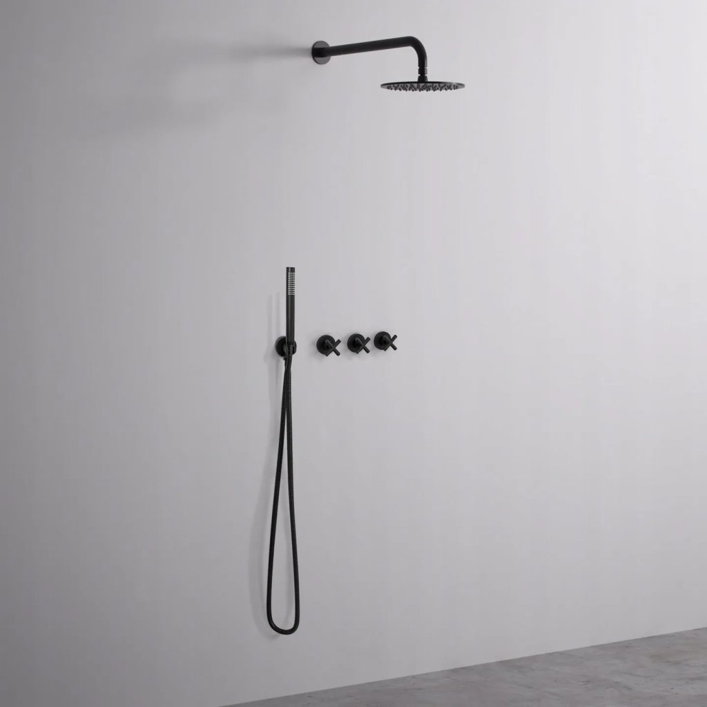 - Esőzuhanyfej: rozsdamentes acél, fekete, átmérő 300 mm