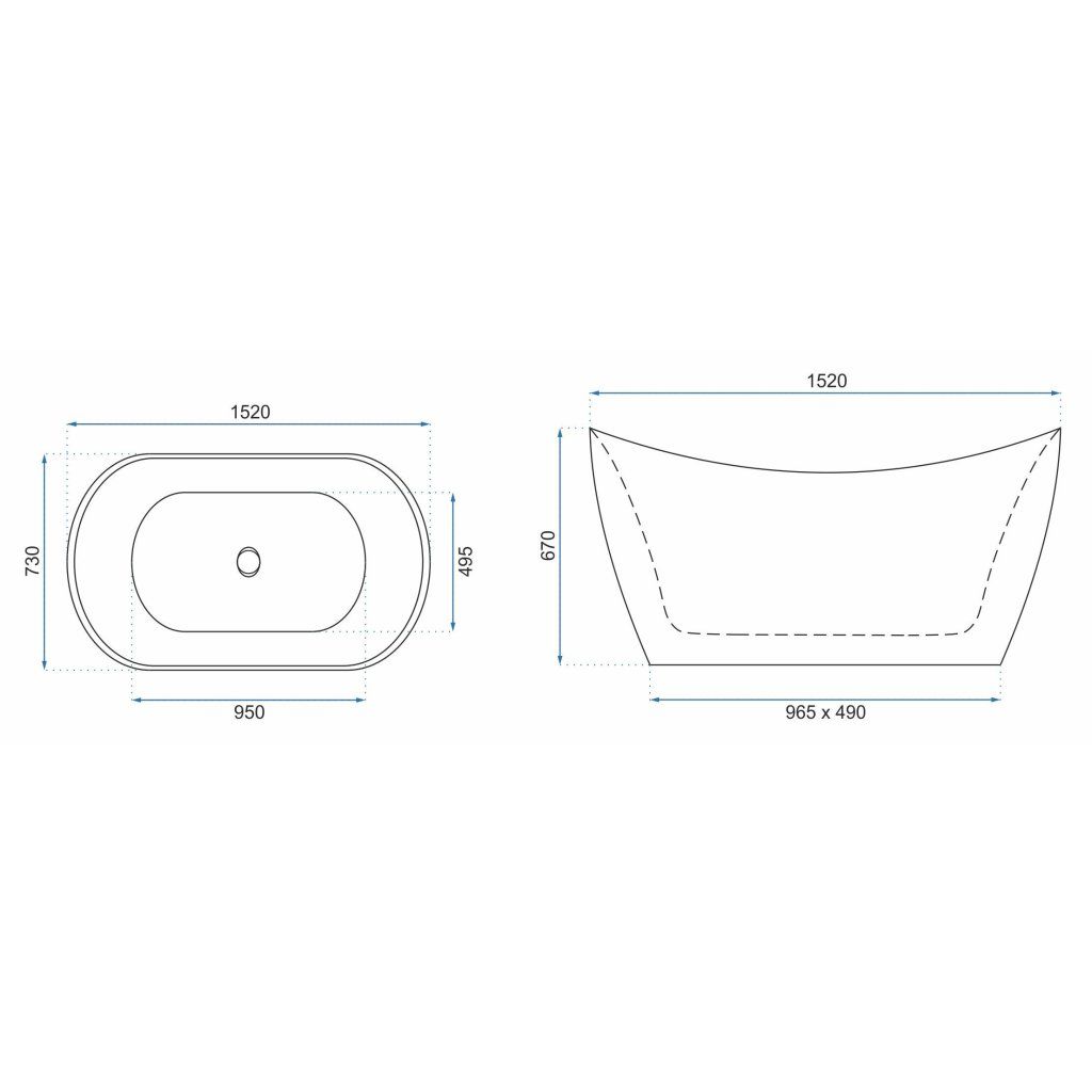 Rea Ferrano, szabadon álló kád 150x73 cm, fehér fényes, REA-W0099