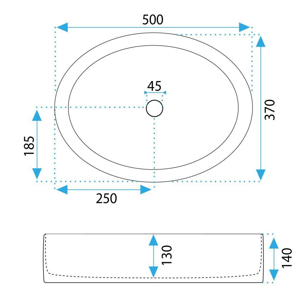 Rea Fonda, asztali mosogató 500x370x140mm, fehér fényes, REA-U0604