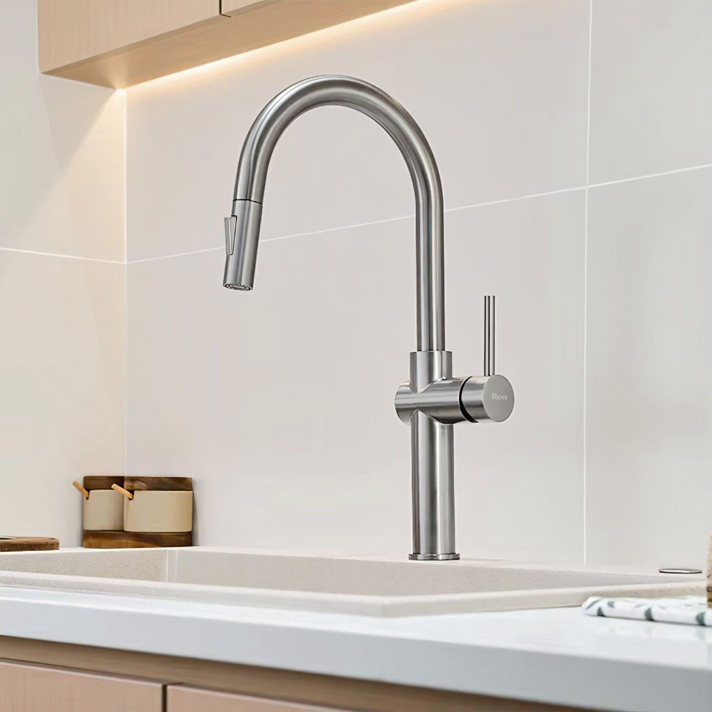 ✔ Kihúzható kifolyó – teljes mozgásszabadság és a teljes mosogató kényelmes öblítése