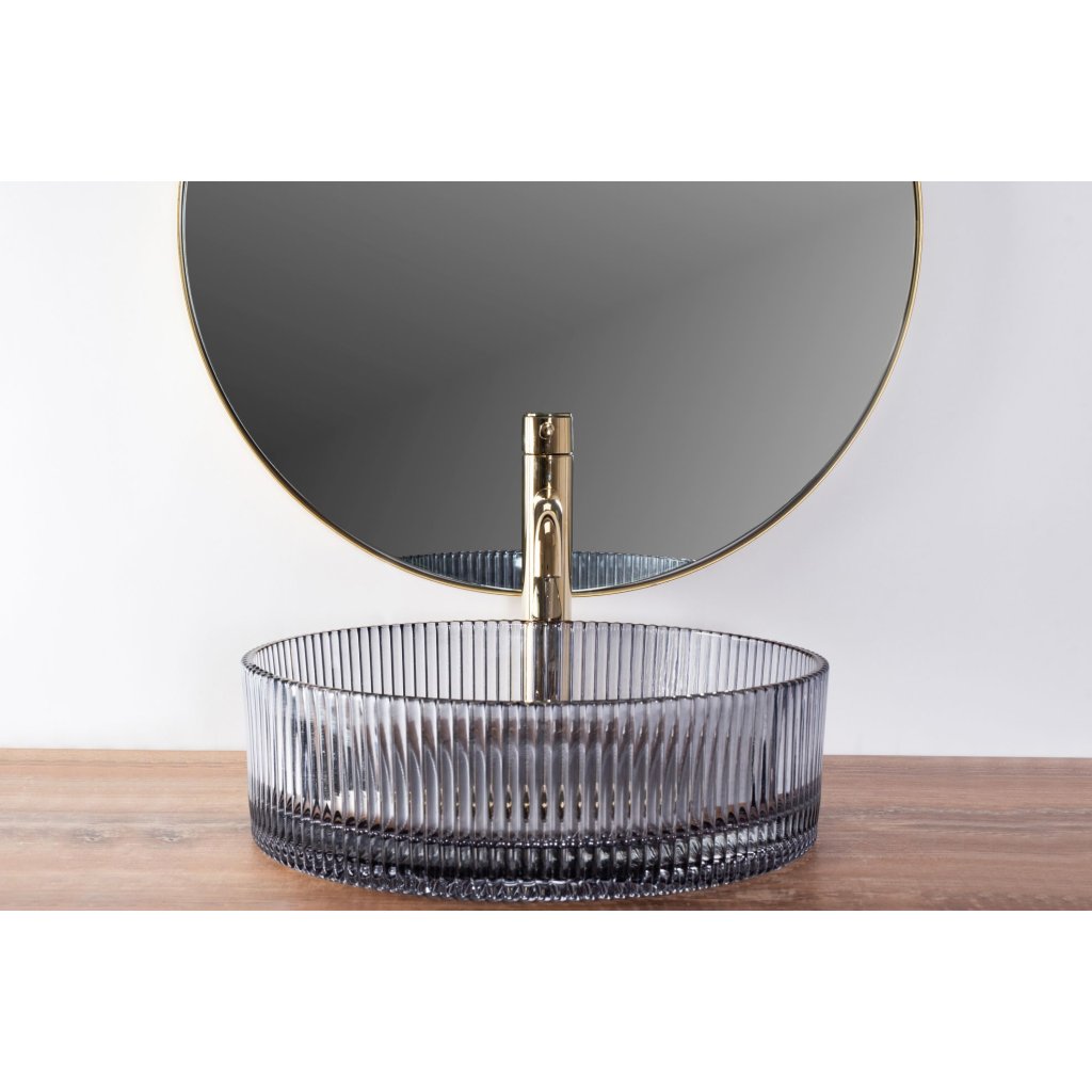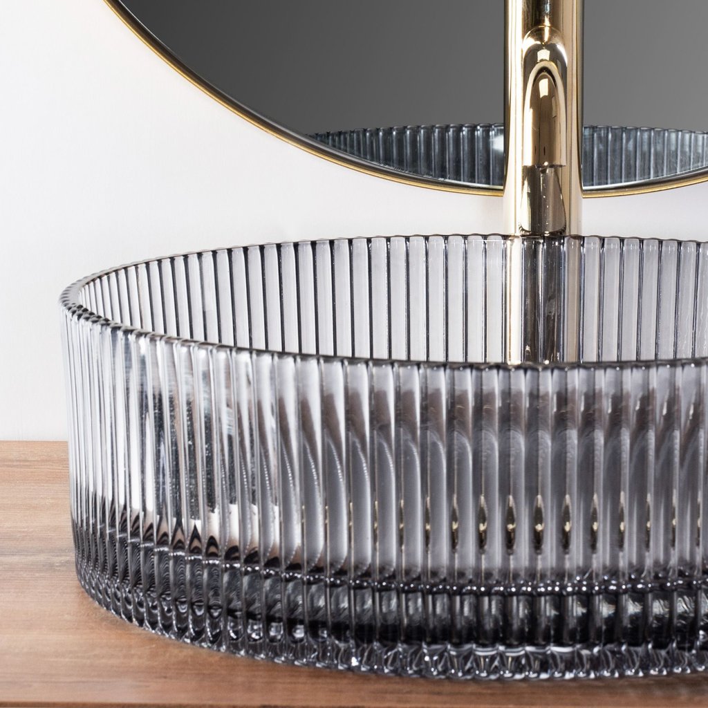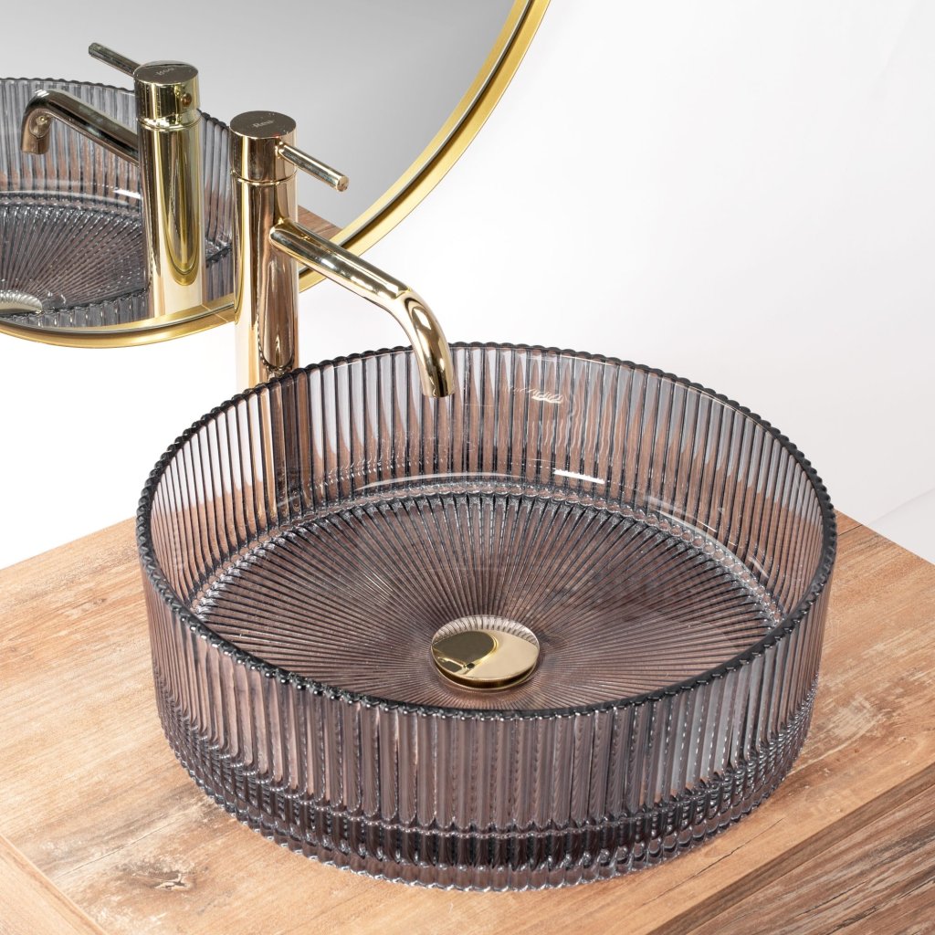 Rea Ingrid, üveg asztali mosogató 40x40x13 cm, szürke, REA-U0279