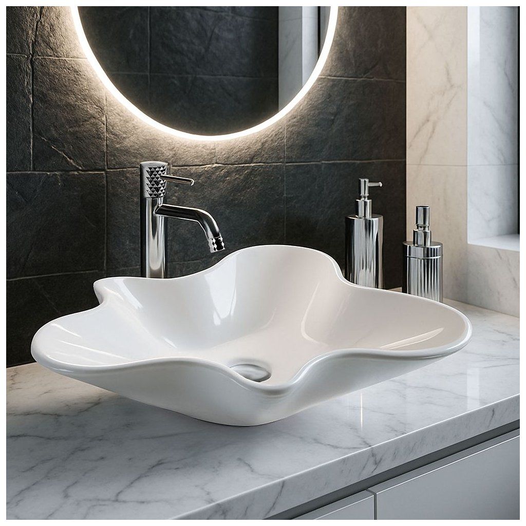Az Izolda pultra szerelhető mosdó kivételes dizájn azok számára, akik értékelik a modern dizájnt és az egyedi formákat. Szabálytalan, természetes vonalak által ihletett alakja feltűnő díszítőelemmé teszi, amely megváltoztatja bármely fürdőszoba jellegét. A modell kiváló minőségű szaniter kerámiából készült, amely tartósságot és hosszú élettartamot garantál a mindennapi használat során. A sima, hófehér felület könnyen tisztítható, és évekig megőrzi esztétikai megjelenését. Az Izolda mosdó ideális modern és minimalista elrendezésekhez, valamint olyan projektekhez, ahol az eredetiség és a merész hangsúlyok a hangsúlyosak.