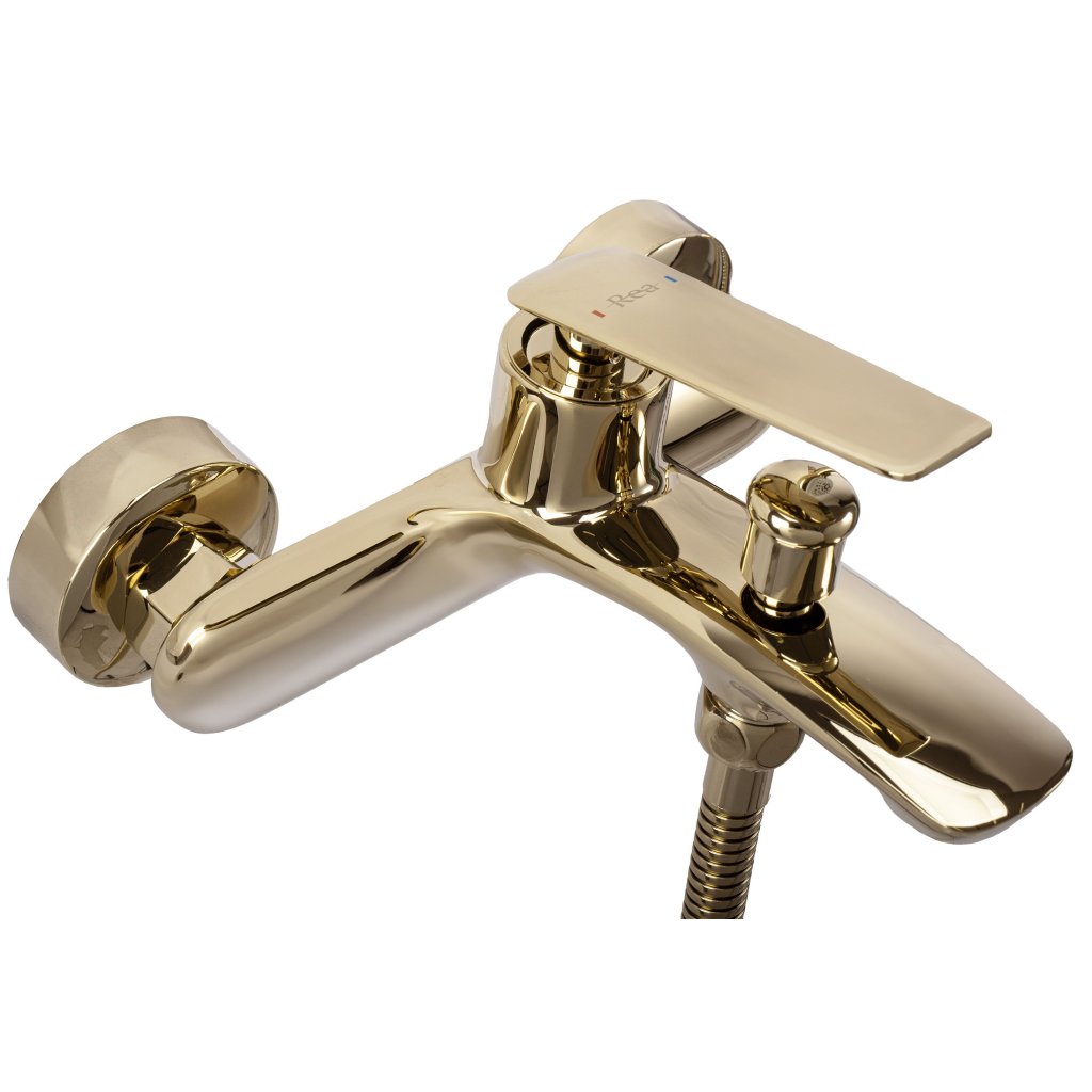 Rea Jager, falra szerelhető kádcsaptelep kézi pontzuhany készlettel, arany fényes, REA-B0699